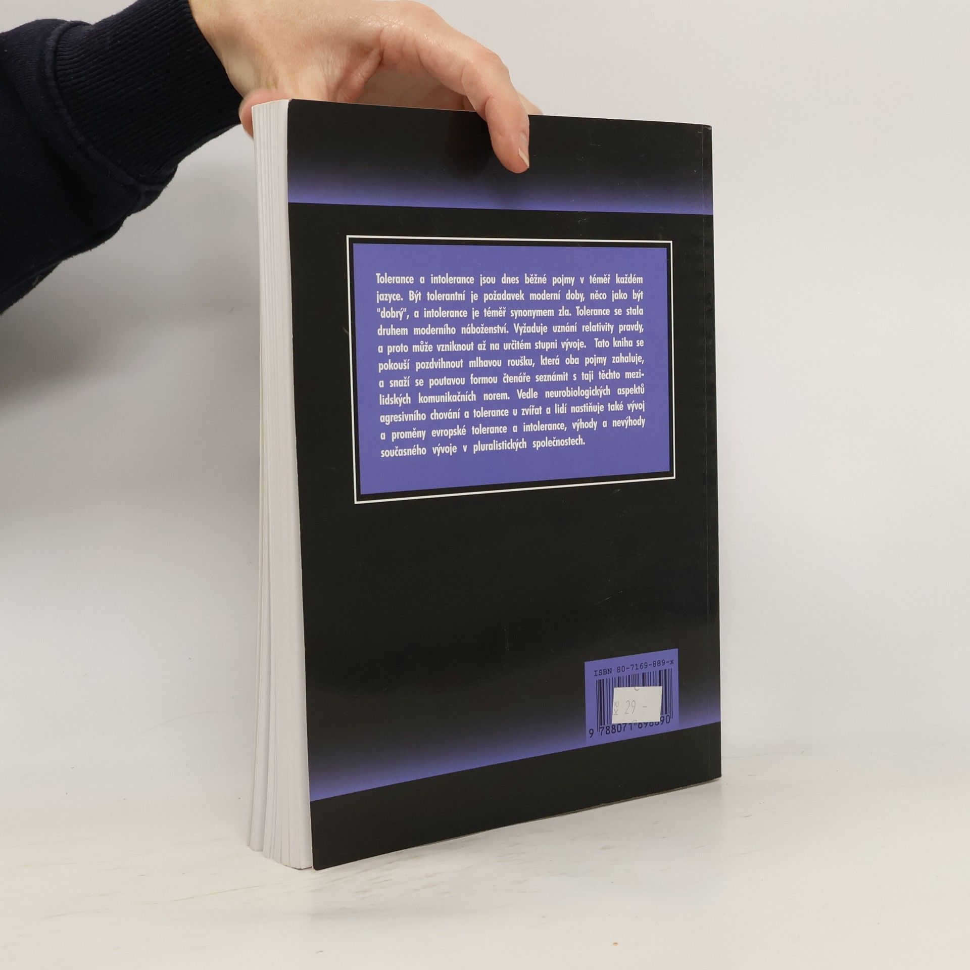 Tolerance a intolerance jsou dnes běžné pojmy v téměř každém jazyce. Být tolerantní je požadavek moderní doby, něco jako být "dobrý", a intolerance je téměř synonymem zla. Tolerance se stala druhem moderního náboženství. Tolerance vyžaduje uznání relativity pravdy, a proto může vzniknout až na určitém stupni vývoje. Tato kniha se pokouší pozdvihnout mlhavou roušku, která oba pojmy zahaluje, a snaží se poutavou formou čtenáře seznámit s taji těchto mezilidských komunikačních norem. Nastiňuje vývoj a proměny evropské tolerance a intolerance, výhody a nevýhody současného vývoje v pluralistických společnostech.