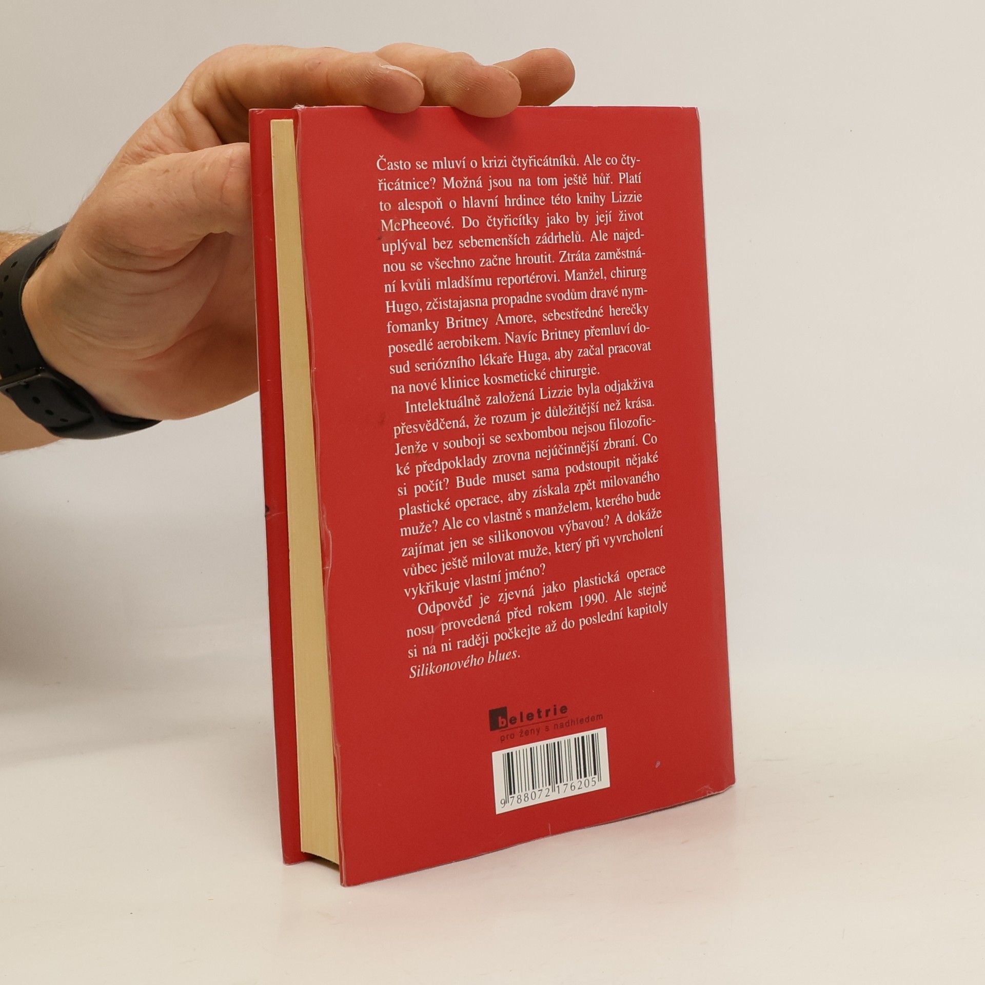 Plastické lásky čtyřicetileté krásky. Lizzie Mc Phee je přesvědčená, že její život nemá jedinou chybičku - dokud si neuvědomí, že se blíží obávaná čtyřicítka. Ukažte mi ženu, která je spokojená, že jí táhne na čtyřicet a já vám ukážu, kde má po těle jizvy od vymývání mozku pomocí elektrošoků. Ztráta zaměstnání kvůli mladší reportérce nezůstane jedinou třískou, která se nečekaně zaryje pod nehtíky Lizziina života. Její manžel, chirurg Hugo, propadne zčistajasna svodům dravé chlapůlačné šelmy Britney Amore, herečky, která se udržuje v kondici provozováním step aerobiku na velikém balíku vlastního ega. Ještě horší je, že Britney přemluví až doposud idealistického Huga, aby začal pracovat na její nové klinice kosmetické chirurgie. Lizzie odjakživa věřila, že je rozum důležitější než krása, jenže v boji proti sexbombě jsou jí zásady i hluboké úvahy platné asi tolik co eunuch nymfomance. Bude Lizzie sama muset pod nůž, aby si získala zpět milovaného muže? Ale proč by vlastně měla chtít manžela, který se o ni bude zajímat jedině když se nechá prošpikovat silikonem od hlavy až k patě? A dokáže vůbec ještě milovat muže, který při vyvrcholení vykřikuje svoje vlastní jméno? Odpověď je zjevná jako plastická operace nosu před rokem 1990. Lékařské varování: Přílišný smích podporuje vznik vrásek!