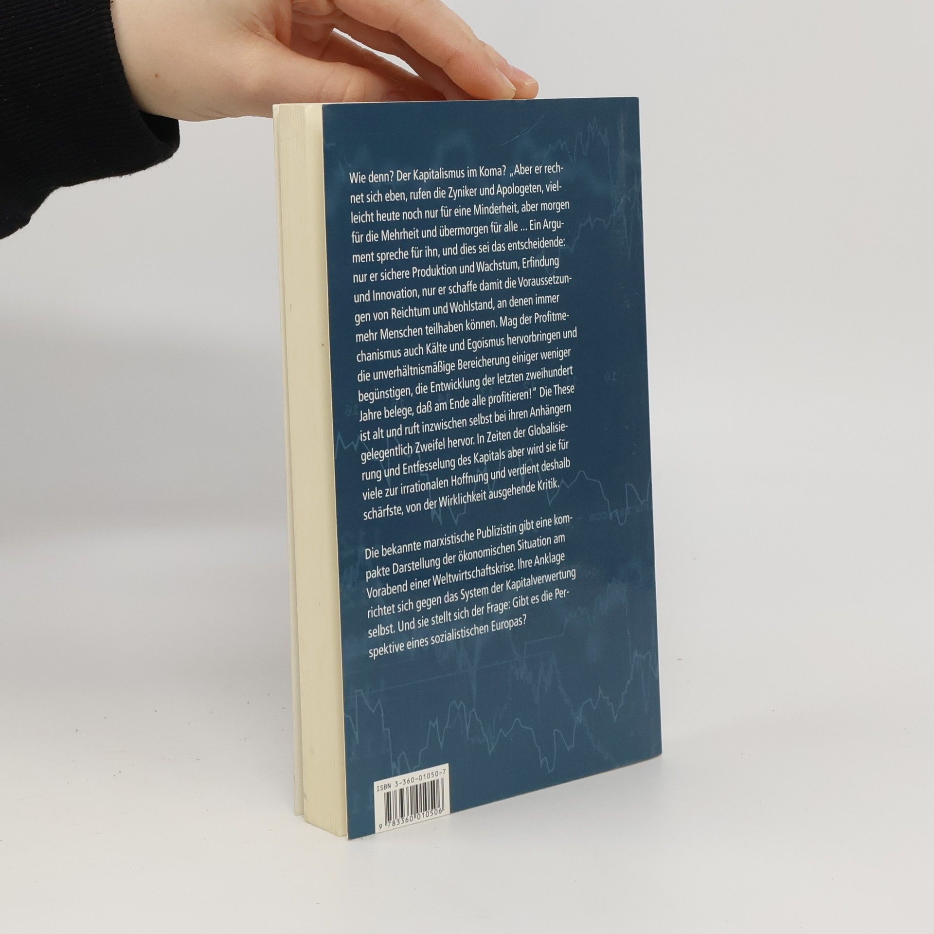§B§Wie denn? Der Kapitalismus im Koma?§S§"Aber er rechnet sich eben, rufen die Zyniker und Apologeten, vielleicht heute ncoh nur für eine Minderheit, aber morgen für die Mehrheit und übermorgen für alle... Ein Argument spreche für ihn, und dies sei das entscheidende: nur er sichere Produktion und Wachstum, Erfindung und Innovation, nur er schaffe damit die Voraussetzungen von Reichtum und Wohlstand, an denen immer mehr Menschen teilhaben können. Mag der Profitmechanismus auch Kälte und Egoismus hervorbringen und die unverhältnismäßige Bereicherung einiger weniger begünstigen, die Entwicklung der letzten zweihundert Jahre belege, daß am Ende alle profitieren!"§Die These ist alt und ruft inzwischen selbst bei ihren Anhängern gelegentlich Zweifel hervor. In Zeiten der Globalisierung und Entfesselung des Kapitals aber wird sie für viele zur irrationalen Hoffnung und verdient deshalb schärfste, von der Wirklichkeit ausgehende Kritik.§§Die bekannte marxistische Publizistin gibt eine kompakte Darstellung der ökonomischen Situation am Vorabend einer Weltwirtschaftskrise. Ihre Anklage richtet sich gegen das System der Kapitalverwertung selbst. Und sie stellt sich der Frage: Gibt es die Perspektive eines sozialistischen Europas?