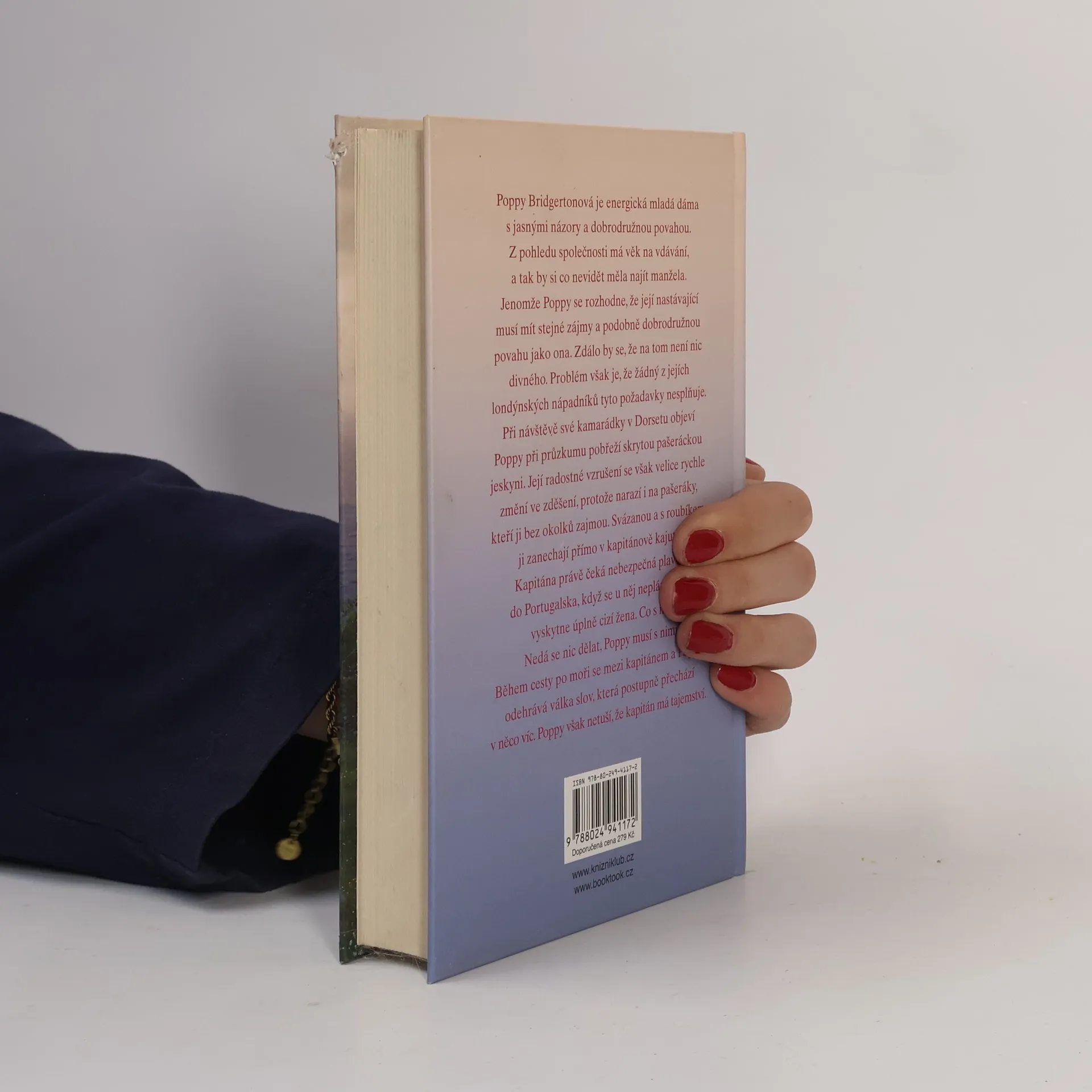 Poppy Bridgertonová je energická mladá dáma s jasnými názory a s dobrodružnou povahou. Z pohledu společnosti má věk na vdávání, a tak by si co nevidět měla najít nápadníka. Jenomže Poppy se rozhodne, že její nastávající musí mít stejné zájmy a podobně dobrodružnou povahu jako ona. Zdálo by se, že na tom není zas tak nic divného. Problém však je, že žádný z jejích londýnských nápadníků tyto požadavky nesplňuje. Při návštěvě svých známých v Dorsetu objeví Poppy při průzkumu pobřeží skrytou pašeráckou jeskyni. Její radostné vzrušení se však velice rychle změní ve zděšení, protože narazí i na pašeráky, kteří ji bez okolků zajmou. Svázanou a s roubíkem ji zanechají přímo v kapitánově kajutě. Jaké je poté překvapení kapitána Andrewa Jamese Rokesbyho, když najde Poppy ve své kajutě. Kapitán tajně přepravuje pro britskou vládu citlivé dokumenty a právě ho čeká nebezpečná plavba do Portugalska, když se u něj neplánovaně vyskytne úplně cizí žena. Co s ní? Nedá se nic dělat, Poppy musí s nimi. Během cesty po moři se mezi Andrewem a Poppy odehrává válka slov, která však postupně přechází v něco víc. Poppy však netuší, že Andrew má tajemství.