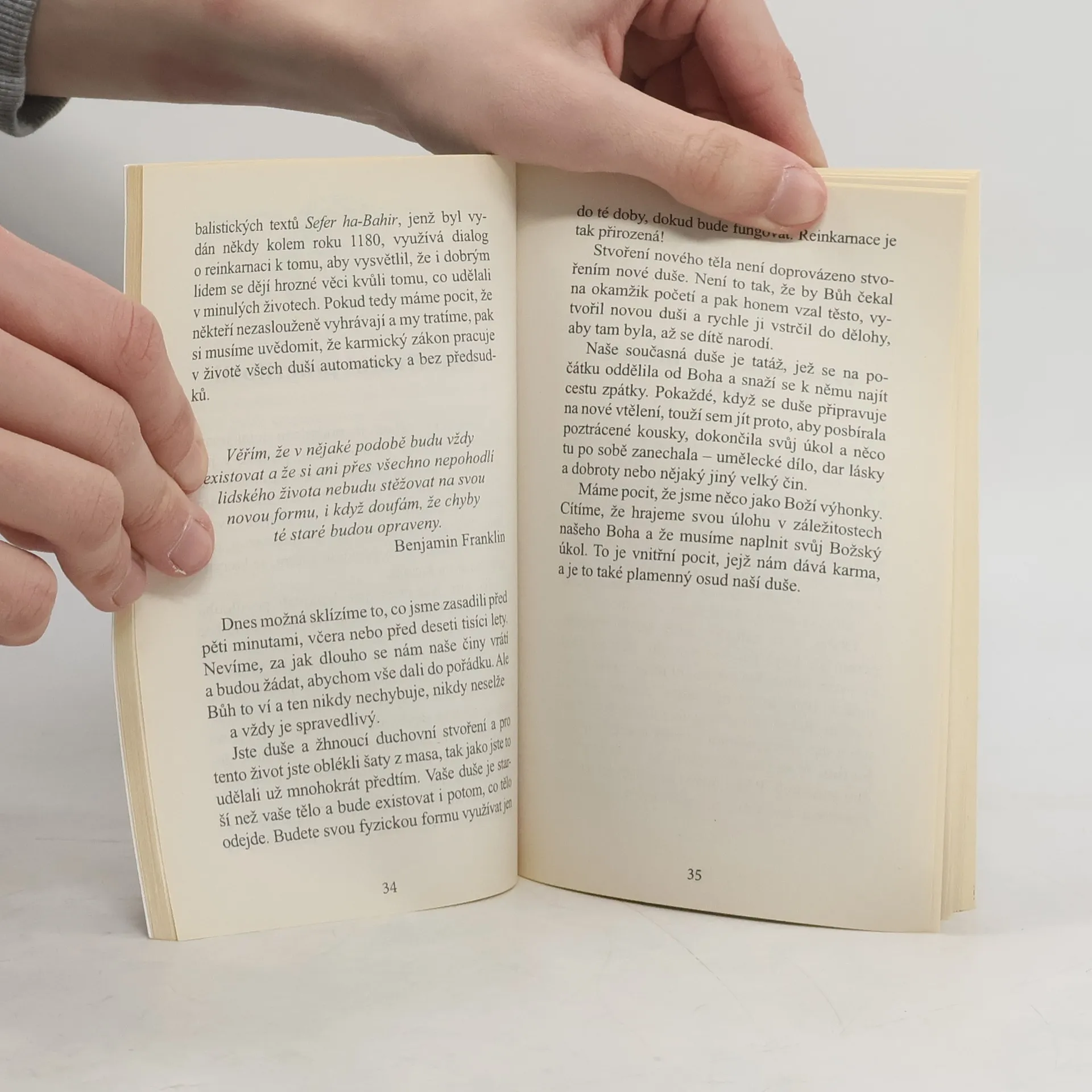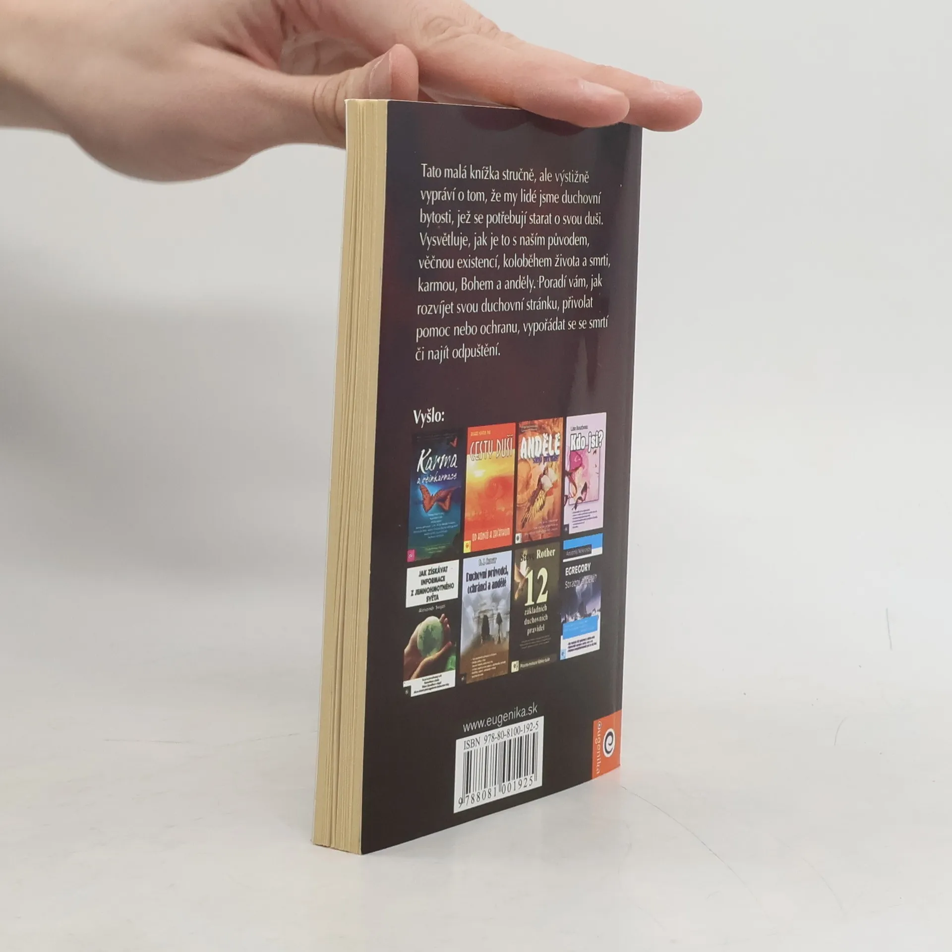 Knížka stručně, ale výstižně vypráví o tom, že my lidé jsme duchovní bytosti, jež se potřebují starat o svou duši. Vysvětluje, jak je to s naším původem, věčnou existencí, koloběhem života a smrti, karmou, Bohem a anděly. Poradí vám, jak rozvíjet svou duchovní stránku, přivolat pomoc nebo ochranu, vypořádat se se smrtí či najít odpuštění.