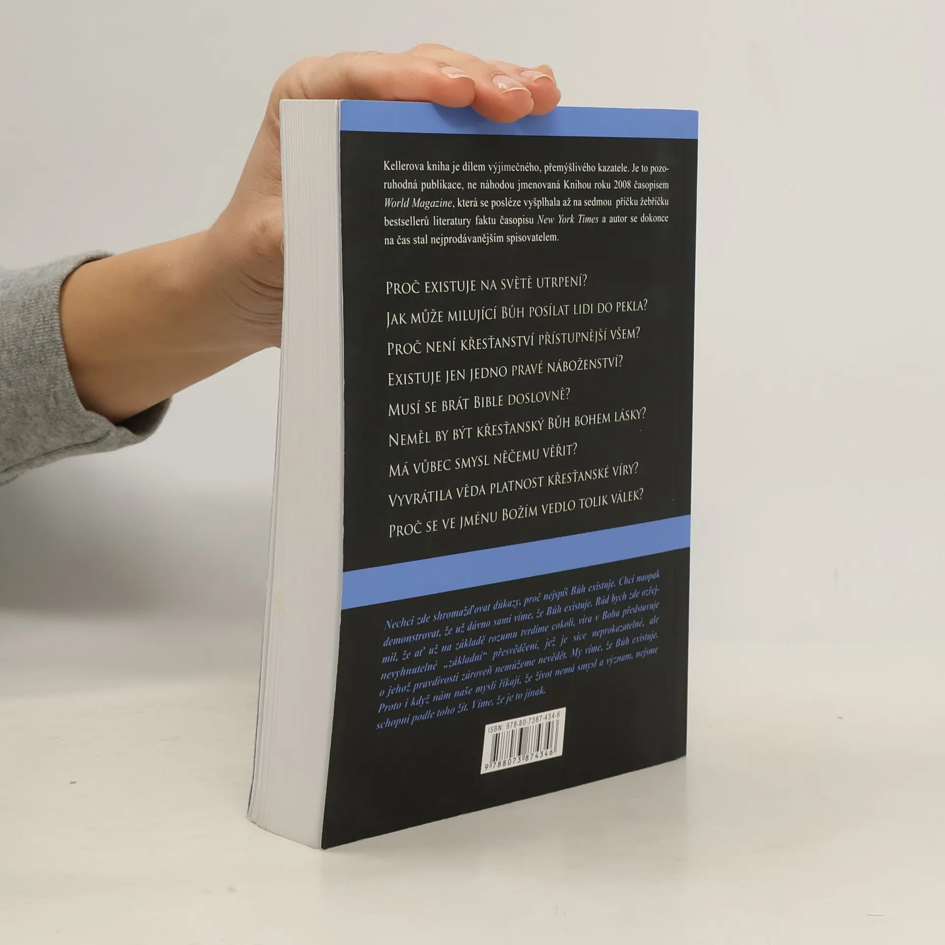 Rozumové důvody pro víru v Boha ve věku skepticismu Kellerova kniha je dílem výjimečného, přemýšlivého kazatele. Je to pozoruhodná publikace, ne náhodou jmenovaná Knihou roku 2008 časopisem World Magazine, která se posléze vyšplhala až na sedmou příčku žebříčku bestsellerů literatury faktu časopisu New York Times a autor se dokonce na čas stal nejprodávanějším spisovatelem). Kritika označila Kellera za „C. S. Lewise pro 21. století“ nikoliv náhodou: u nás dobře známý britský spisovatel a obránce křesťanské víry C. S. Lewis se totiž stal jedním z Kellerových vzorů. Timothy Keller využívá bohatého literárního materiálu z oblasti beletristické klasiky, filosofie, křesťanské apologetiky, teologie, evoluční biologie a celé řady dalších oborů, aby odpověděl na spoustu otázek, jež si kladou lidé, kteří hledají Boha. Systematicky otázky rozebírá, žádnou nevynechává, nebojí se ani nejchoulostivějších témat. Proč existuje na světě utrpení? Jak může milující Bůh posílat lidi do pekla? Proč není křesťanství přístupnější všem? Existuje jen jedno pravé náboženství? Musí se brát Bible doslovně? Neměl by být křesťanský Bůh bohem lásky? Má vůbec smysl něčemu věřit? Vyvrátila věda platnost křesťanské víry? Proč se ve jménu Božím vedlo tolik válek? Vydání první
