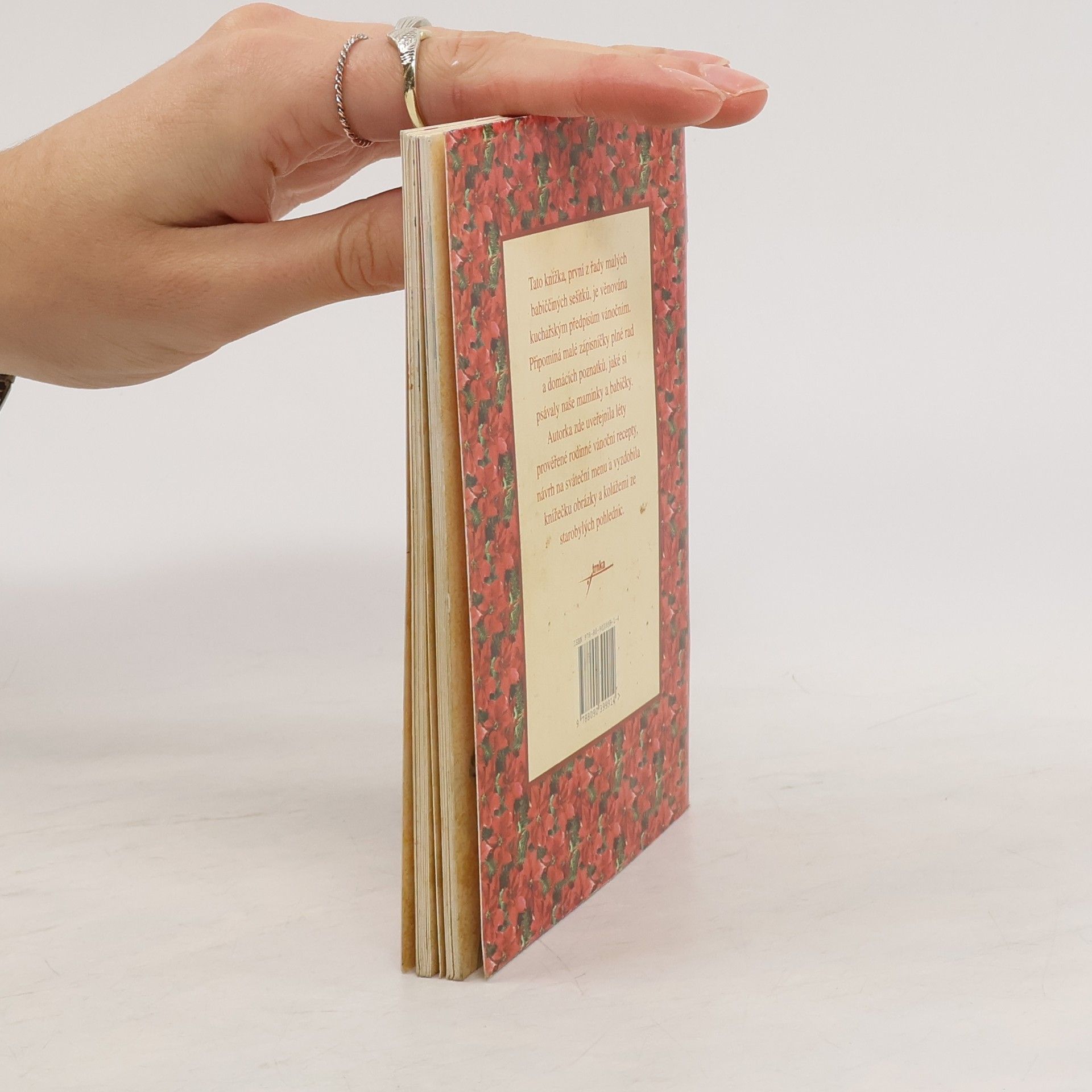 Tato knížka, první z řady malých babiččiných sešitků, je věnována kuchařským předpisům vánočním. Připomíná malé zápisníčky plné rad a domácích poznatků, jaké si psávaly naše maminky a babičky. Autorka zde uveřejnila léty prověřené rodinné vánoční recepty, návrh na sváteční menu a vyzdobila knížečku obrázky a kolážemi ze starobylých pohlednic. 2. vydání.