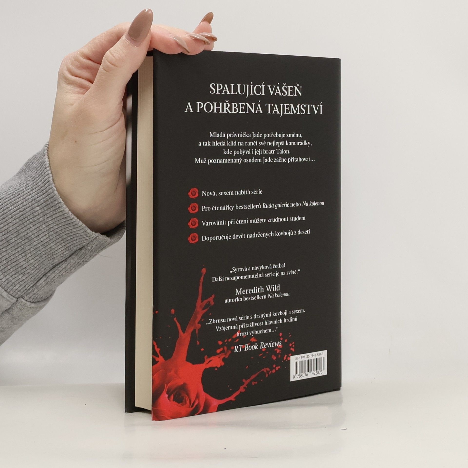 Mladou právničku Jade Robertsovou opustil ženich v den svatby. Ponížení ji pálí, a tak hledá útěchu na coloradském ranči své nejlepší kamarádky Marjorie Steelové. Vůbec nečeká, že ji začne přitahovat Marjoriin zamlklý, odtažitý bratr Talon. Jakmile ji navíc nádherný kovboj políbí, je Jade ztracená… Talon Steel je zlomený, hluboce raněný muž. Nikdy se plně nezotavil z následků hrozného trýznění a mučení, kterému byl vystaven v dětství, a tak žije jen ze dne na den a bere si od žen, co mu samy nabízejí. Na oplátku jim nic nevrací. Ovšem jen do chvíle, kdy mu do života vtrhne Jade. Je krásná, milá a štědrá a jeho touha po ní se změní v posedlost – až se Talon začne bát, že tak silnou touhu nedokáže nikdy uhasit. Mezi oběma milenci zahoří spalující vášeň… ale Talona i Jade pronásledují dlouho pohřbená tajemství a je možné, že je nakonec rozdělí.
