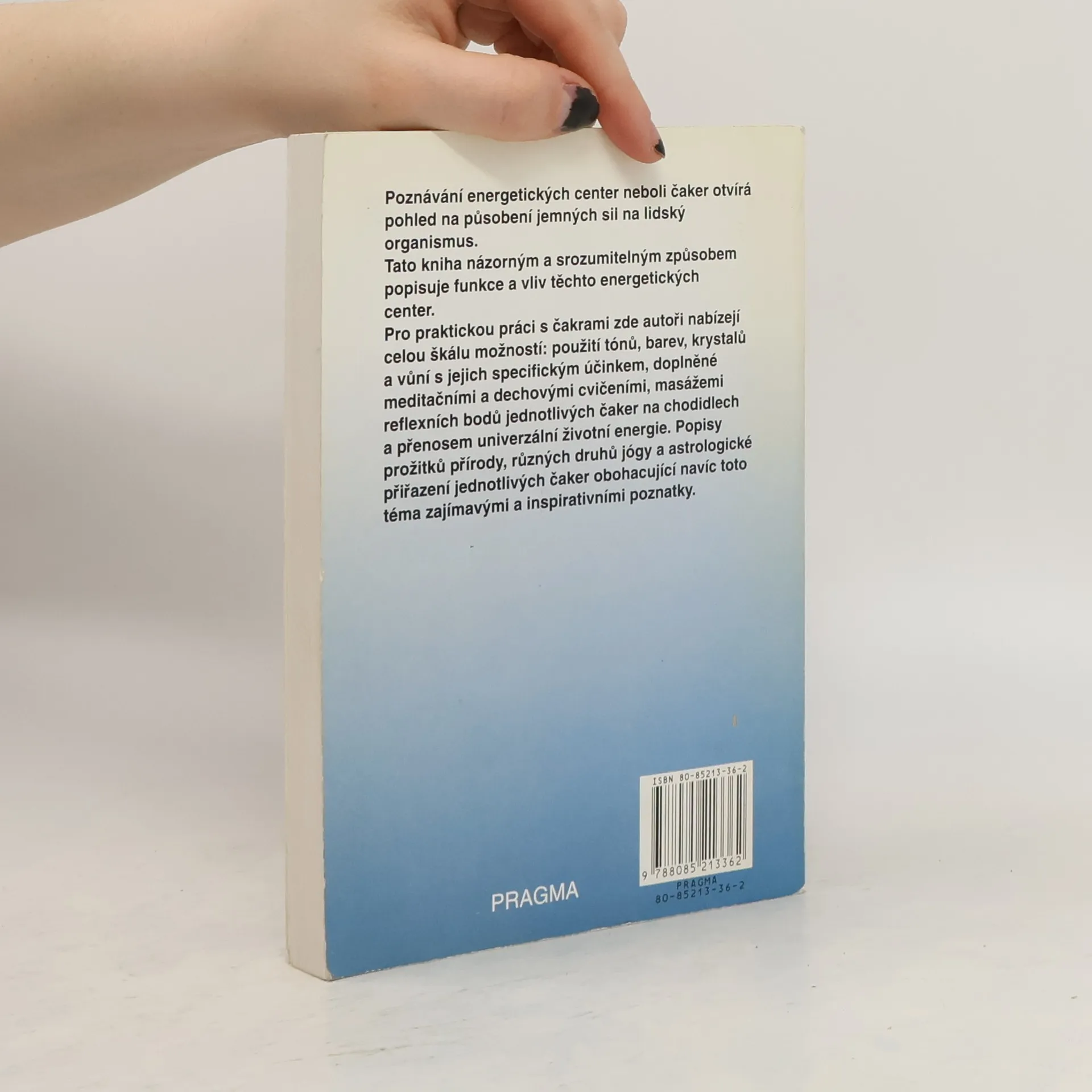 Poznávání energetických center neboli čaker otvírá pohled na působení jemných sil na lidský organismus. Tato kniha názorným a srozumitelným způsobem popisuje funkce a vliv těchto energetických center. Pro praktickou práci s čakrami zde autoři nabízejí celou škálu možností: použití tónů, barev, krystalů a vůní s jejich specifickým účinkem, doplněné meditačními a dechovými cvičeními, masážemi reflexních bodů jednotlivých čaker na chodidlech a přenosem univerzální životní energie. Popisy prožitků přírody, různých druhů jógy a astrologické přiřazení jednotlivých čaker obohacující navíc toto téma zajímavými a inspirativními poznatky.... celý text