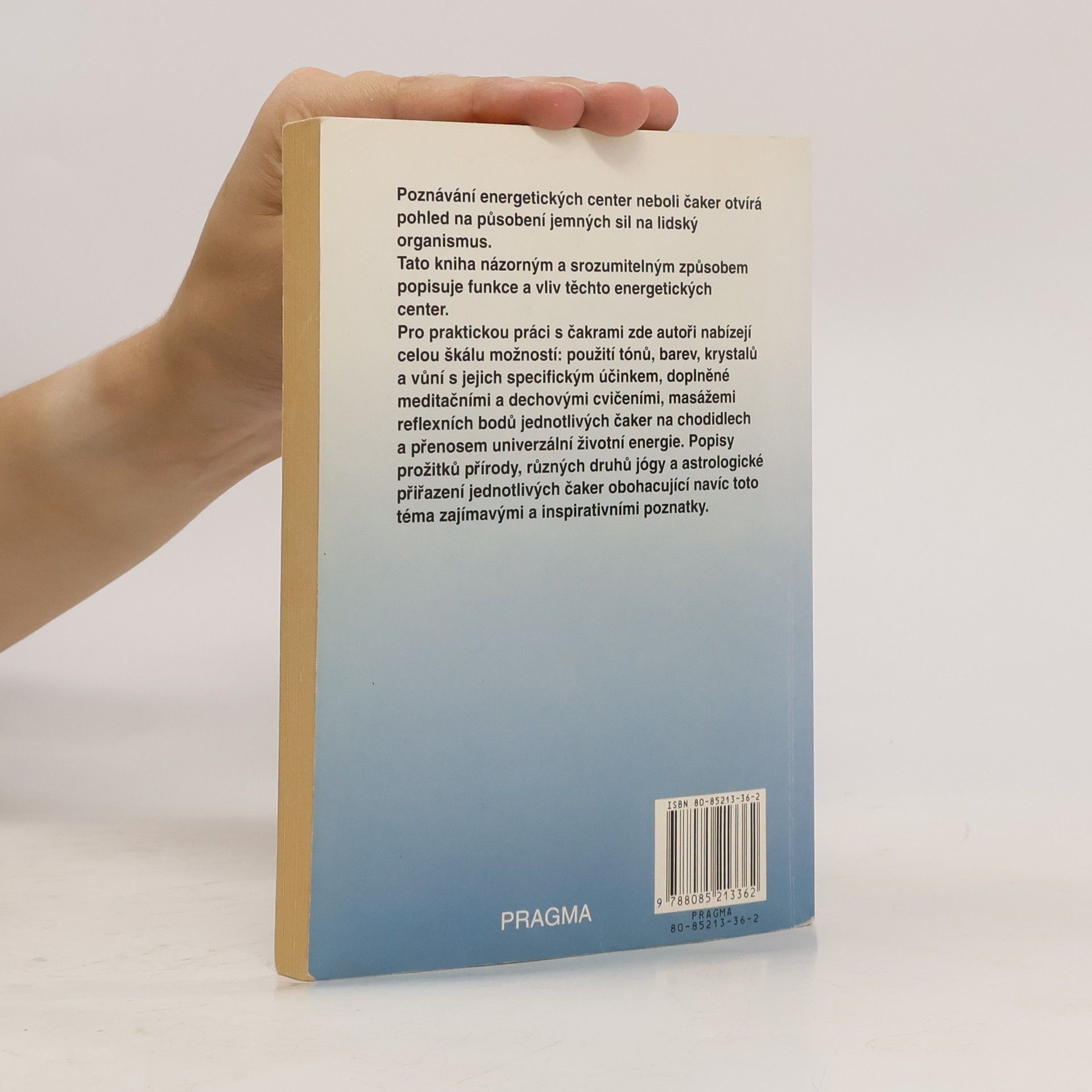 Poznávání energetických center neboli čaker otvírá pohled na působení jemných sil na lidský organismus. Tato kniha názorným a srozumitelným způsobem popisuje funkce a vliv těchto energetických center. Pro praktickou práci s čakrami zde autoři nabízejí celou škálu možností: použití tónů, barev, krystalů a vůní s jejich specifickým účinkem, doplněné meditačními a dechovými cvičeními, masážemi reflexních bodů jednotlivých čaker na chodidlech a přenosem univerzální životní energie. Popisy prožitků přírody, různých druhů jógy a astrologické přiřazení jednotlivých čaker obohacující navíc toto téma zajímavými a inspirativními poznatky.... celý text