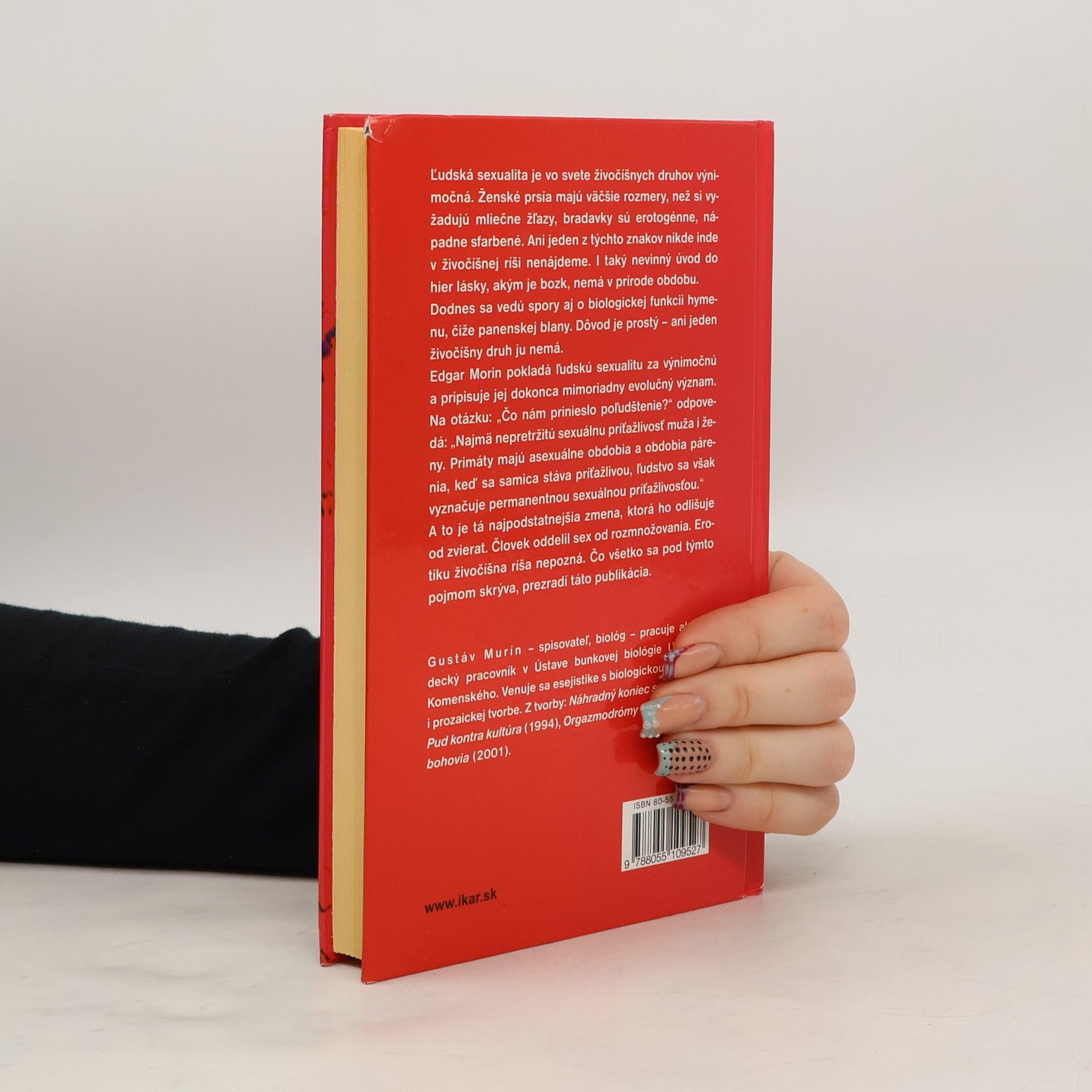 Ľudská sexualita je vo svete živočíšnych druhov výnimočná. Ženské prsia majú väčšie rozmery, než si vyžadujú mliečne žľazy, bradavky sú erotogénne. nápadne sfarbené. Ani jeden z týchto znakov nikde inde v živočíšnej ríši nenájdeme. I taký nevinný úvod do hier lásky, akým je bozk, nemá v prírode obdobu. Dodnes sa vedú spory aj o biologickej funkcii hymenu, čiže panenskej blany. Dôvod je prostý – ani jeden živočíšny druh ju nemá. Edgar Morin pokladá ľudskú sexualitu za výnimočnú a pripisuje jej dokonca mimoriadny evolučný význam. Na otázku: „Čo nám prinieslo poľudštenie?“ odpovedá: „Najmä nepretržitú sexuálnu príťažlivosť muža i ženy. Primáty majú asexuálne obdobia a obdobia párenia, keď sa samica stáva príťažlivou, ľudstvo sa však vyznačuje permanentnou sexuálnou príťažlivosťou.“ A to je tá najpodstatnejšia zmena, ktorá ho odlišuje od zvierat. Človek oddelil sex od rozmnožovania. Erotiku živočíšna ríša nepozná. Čo všetko sa pod týmto pojmom skrýva, prezradí táto publikácia.