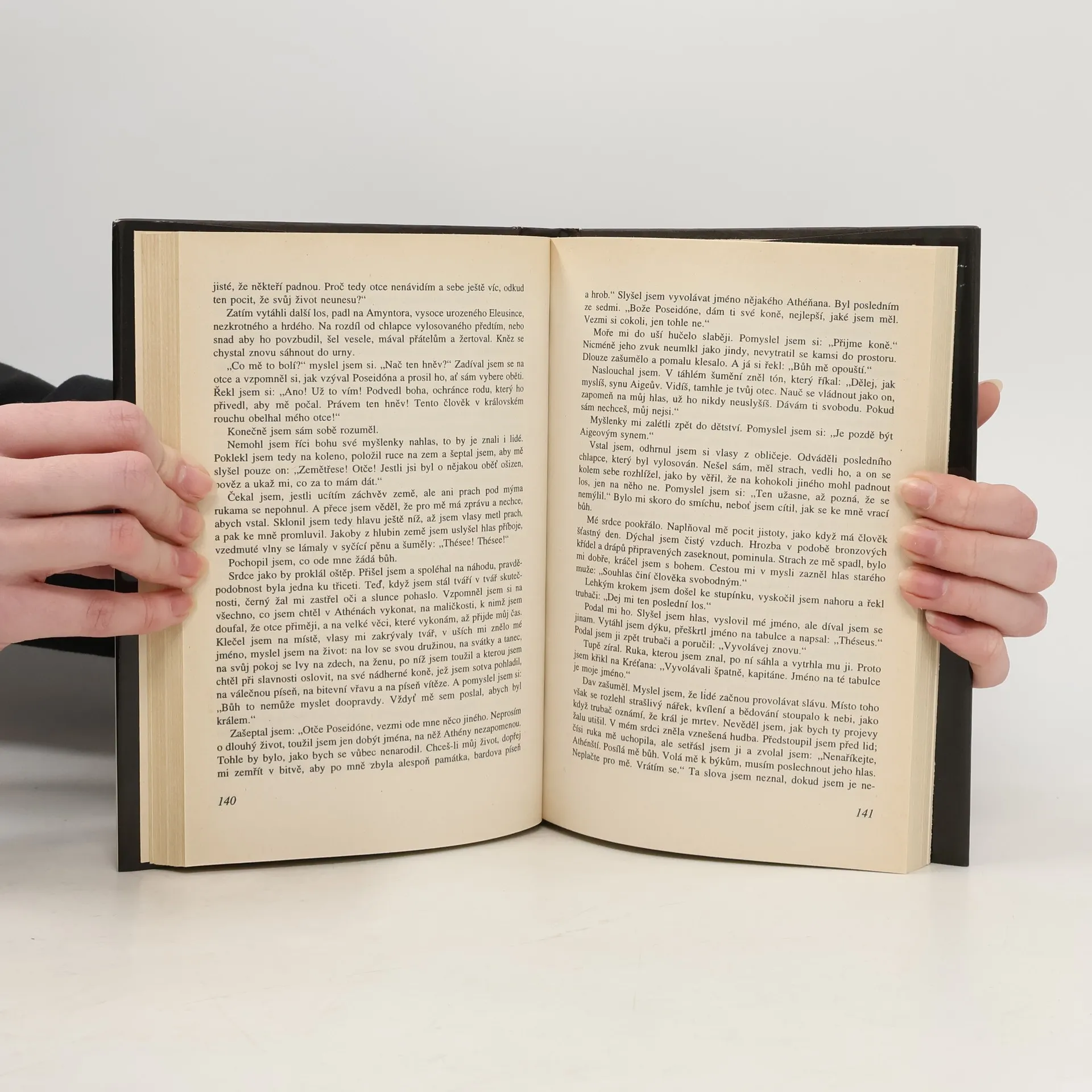 Románové převyprávění starověké báje o athénském hrdinovi Théseovi. Na dvoře jeho děda v Troizeně přes dobrodružné tažení k Aigeovi, králi athénském, jenž je jeho skutečným otcem. Děj pokračuje Théseovou dobrovolnou poutí na Krétu, kde je jedne ze skupiny lidských obětí, určených Minotaurovi, brzy vynikne a stane se vůdcem celé skupiny tanečníků s býky. Posléze se stane hlavou vzpoury, která vede ke zkáze Labyrintu a zrůdného Minotaura.