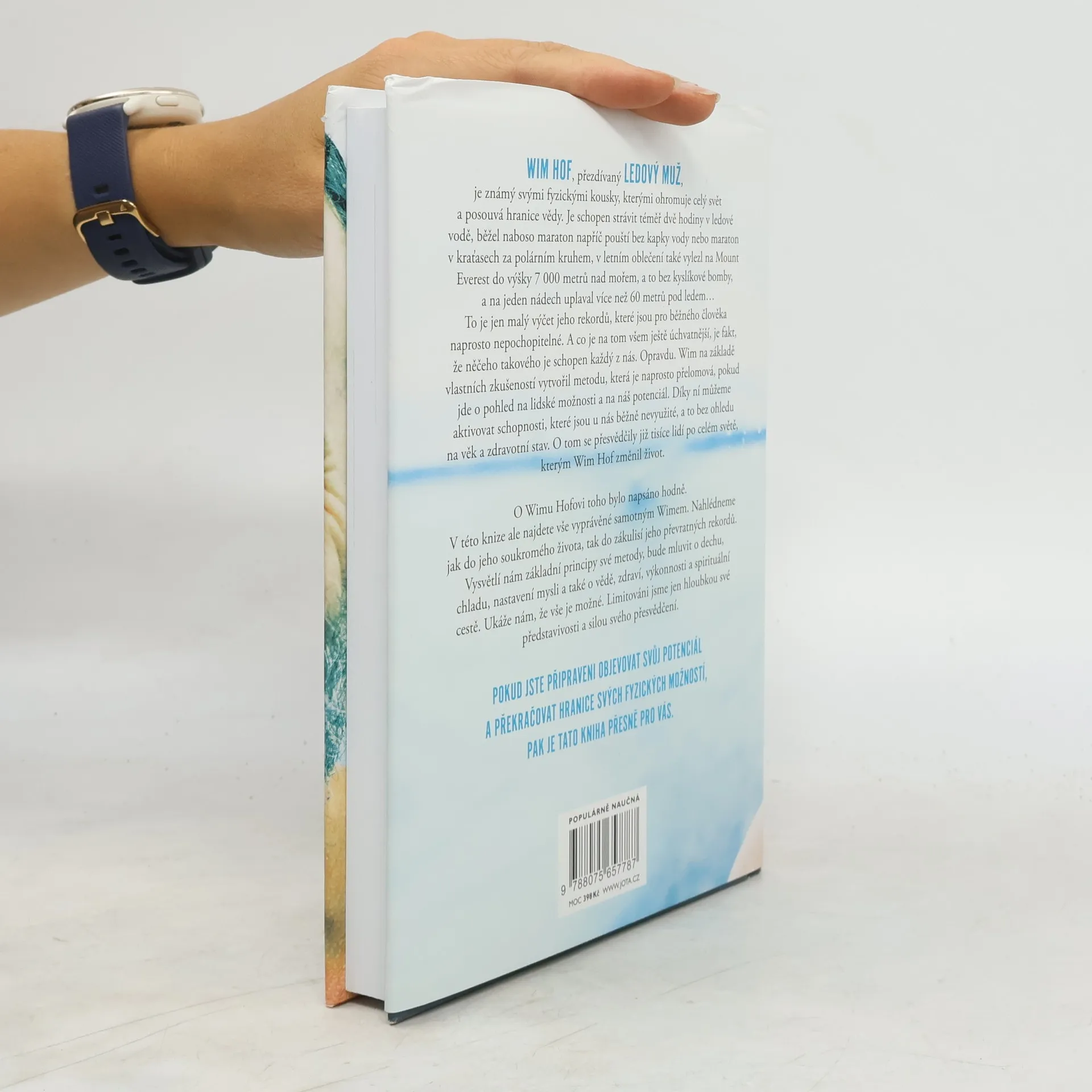 Jediná autorizovaná kniha Wima Hofa představuje převratnou metodu, která nám umožňuje využít náš fyzický i duševní potenciál. Wim Hof, známý jako Ledový muž, ohromuje svět svými neuvěřitelnými výkony, jako je strávení téměř dvou hodin v ledové vodě, běhání maratonů bez vody a výstupy na Mount Everest bez kyslíku. Tyto rekordy mohou vypadat nepochopitelně, ale Hof tvrdí, že podobných schopností může dosáhnout každý z nás. Na základě svých zkušeností vytvořil metodu, která mění pohled na lidské možnosti a aktivuje nevyužité schopnosti, bez ohledu na věk či zdravotní stav. Tisíce lidí po celém světě již pocítily pozitivní změny ve svém životě díky této metodě. Kniha nabízí osobní pohled na Hofův život a zákulisí jeho rekordů. Vysvětluje základní principy jeho metody, včetně technik dýchání, práce s chladem, nastavení mysli a souvislostí se zdravím a spirituálním rozvojem. Hof ukazuje, že naše limity jsou určeny pouze hloubkou naší představivosti a silou přesvědčení. Pokud jste připraveni objevovat svůj potenciál a překonávat fyzické hranice, tato kniha je pro vás. „Tato metoda je jednoduchá, přístupná a vědecky podložená. Může ji praktikovat kdokoli, bez dogmat, pouze s přijetím a svobodou.“