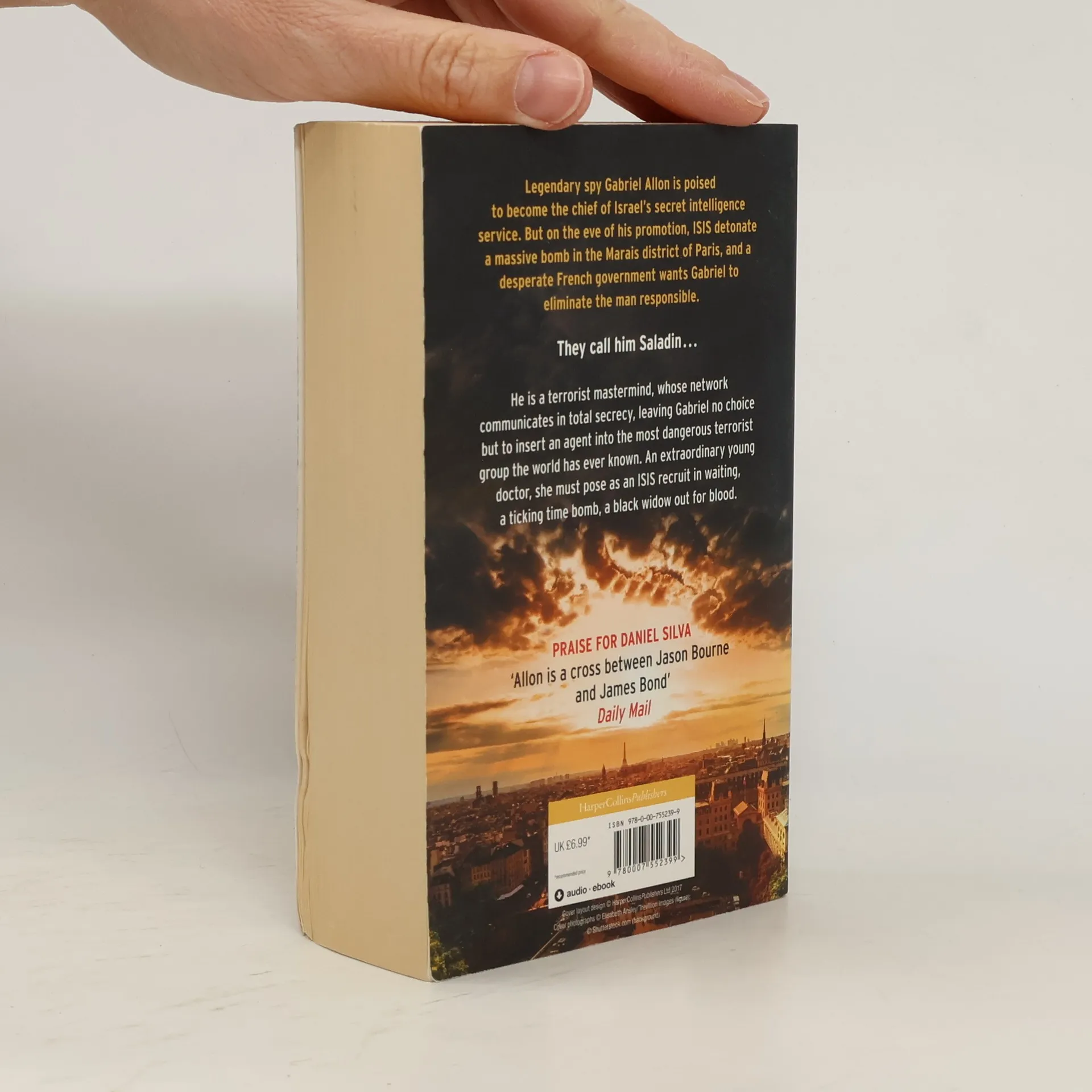 Gabriel Allon, the art restorer, spy, and assassin, is poised to become the chief of Israel's secret intelligence service. But on the eve of his promotion, events conspire to lure him into the field for one final operation. ISIS has detonated a massive bomb in the Marais district of Paris, and a desperate French government wants Gabriel to eliminate the man responsible before he can strike again. They call him Saladin, a terrorist mastermind whose ambition is as grandiose as his nom de guerre, a man so elusive that even his nationality is not known. Shielded by sophisticated encryption software, his network communicates in total secrecy, leaving the West blind to his planning -- and leaving Gabriel no choice but to insert an agent into the most dangerous terror group the world has ever known. She is an extraordinary young doctor, as brave as she is beautiful. At Gabriel's behest, she will pose as an ISIS recruit in waiting, a ticking time bomb -- a black widow out for blood.