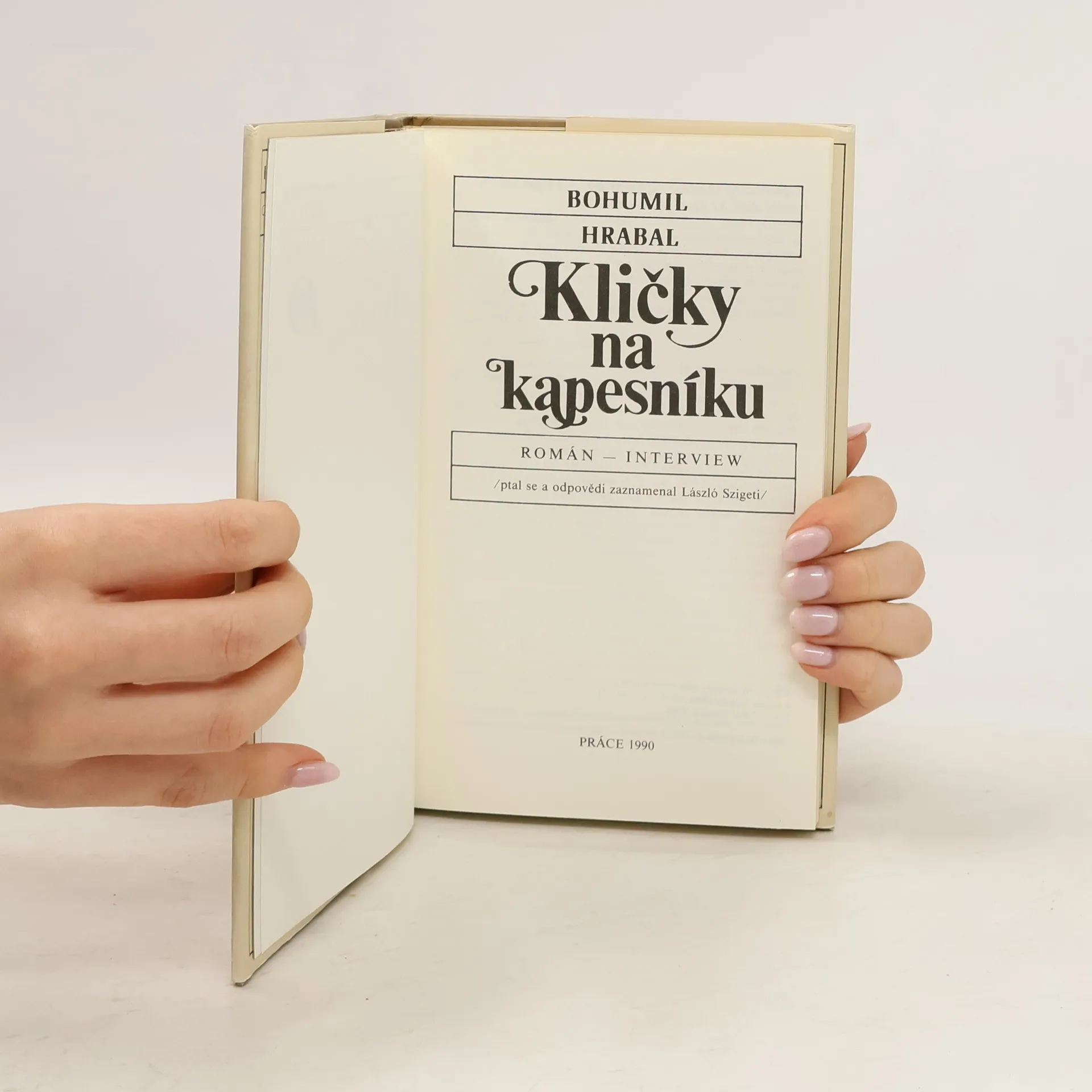 Kniha rozhovorů, které vedl v letech 1984-1985 s Bohumilem Hrabalem maďarský novinář László Szigeti. Formuluje zde postoje k době a světu a zároveň nechává nahlédnout do významných momentů svého lidského i uměleckého vývoje. Volně navazuje na soubor próz Život bez smokingu. 1. vydání.