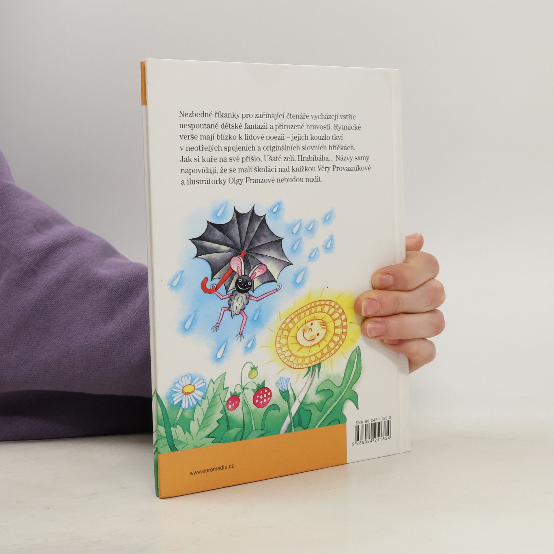 Nezbedné říkanky pro začínající čtenáře vycházejí vstříc nespoutané dětské fantazii a přirozené hravosti. Rytmické verše vycházejí z tradic lidové poezie - jejich kouzlo tkví v neotřelých spojeních a originálních slovních hříčkách. Jak si kuře na své přišlo, Ušaté zelí, Hrabibába… Názvy samy napovídají, že se malí školáci nad knížkou Věry Provazníkové a ilustrátorky Olgy Franzové nebudou nudit.