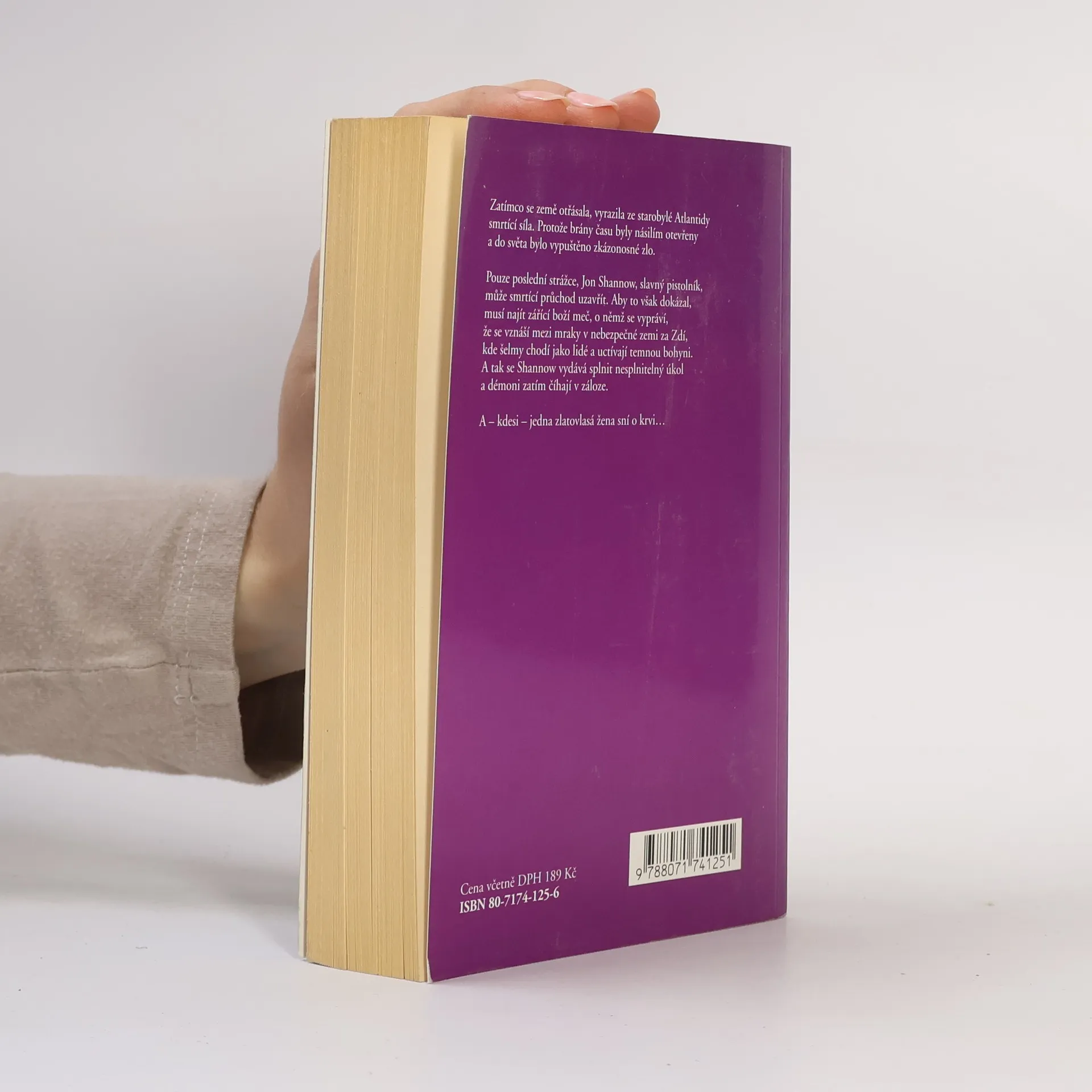 Zatímco se země otřásala, vyrazila ze starobylé Atlantidy smrtící síla. Protože brány času byly násilím otevřeny a do světa bylo vypuštěno zkázonosné zlo. Pouze poslední strážce, Jon Shannow, slavný pistolník, může smrtící průchod uzavřít. Aby to však dokázal, musí najít zářící boží meč, o němž se vypráví, že se vznáší mezi mraky v nebezpečné zemi za Zdí, kde šelmy chodí jako lidé a uctívají temnou bohyni. A tak se Shannow vydává splnit nesplnitelný úkol a démoni zatím číhají v záloze. A - kdesi - jedna zlatovlasá žena sní o krvi...