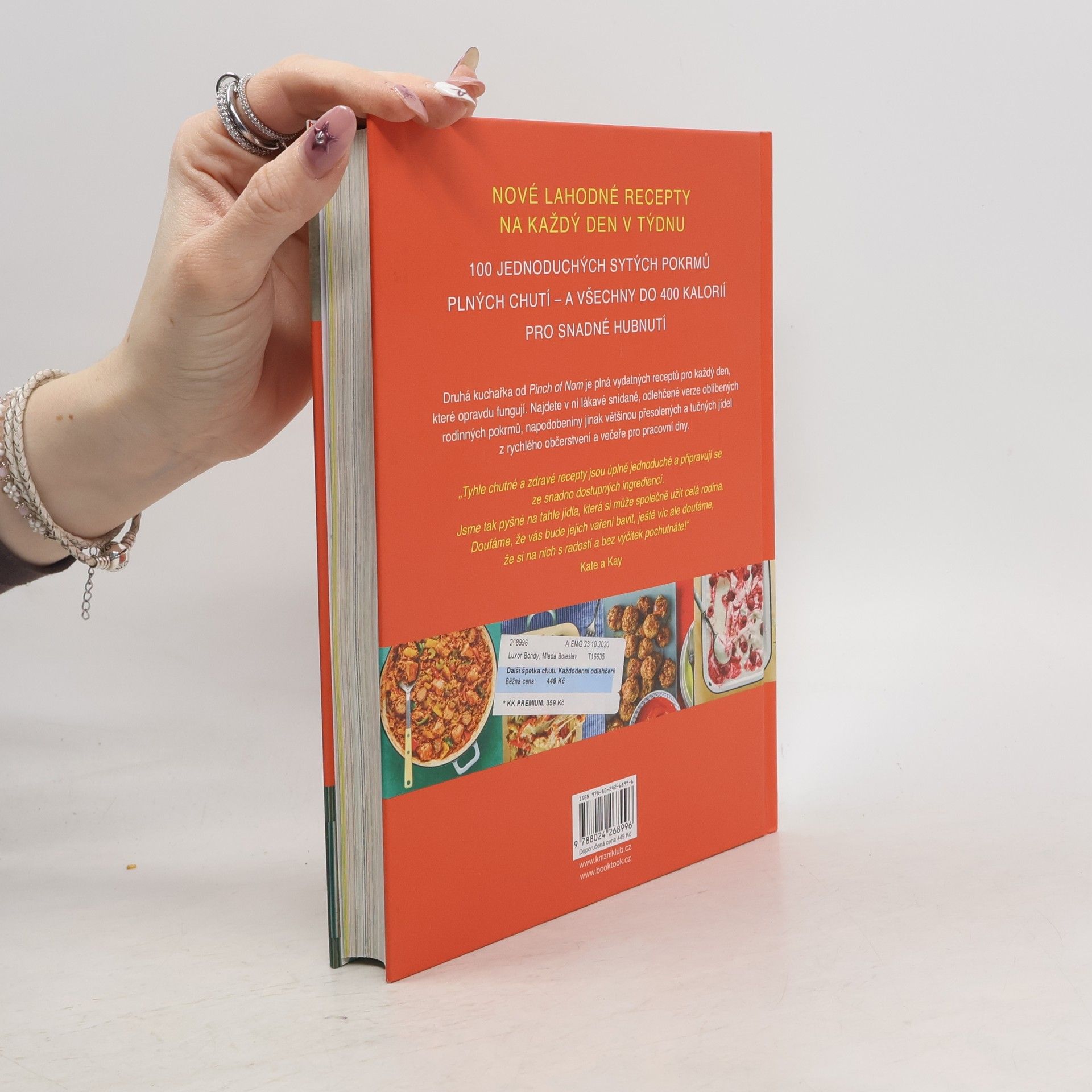 Autorky populárního blogu Pinch of nom a stejnojmenné kuchařky (u nás vyšla pod názvem Špetka chuti), připravily další knihu. Uvádějí v ní stovku receptů, podle kterých uvaříte během třiceti minut lahodné pokrmy, všechny včetně příkrmů do 400 kalorií. Jsou mezi nimi vydatné snídaně, lehké variace oblíbených rodinných pokrmů, nízkokalorické napodobeniny jídel z rychlého občerstvení, dokonce i dezerty, polovina receptů je vegetariánských. Každý recept vyzkoušelo a otestovalo dvacet členů komunity Pinch of Nom, takže se můžete spolehnout, že v nich nečíhá žádná nástraha. „Tyhle chutné, zdravé recepty jsou velmi snadné a uvařené z dostupných surovin. Jsme hodně pyšné na to, že si na těchto jídlech společně pochutná celá rodina. Doufáme, že vás vaření podle nás bude těšit, ale ještě víc doufáme, že vás bude těšit jídlo jíst!“ vzkazují Kate a Kay.
