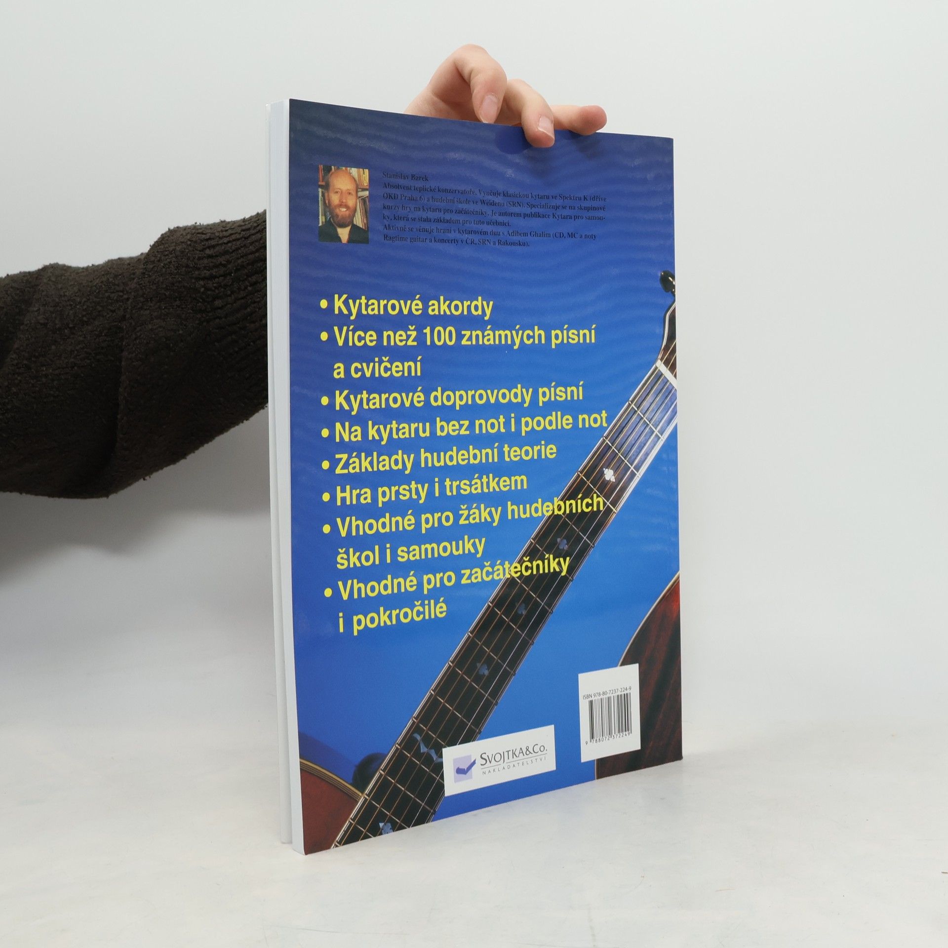 Popisuje základy hry na kytaru až k úplnému zvládnutí nástroje. Více než 100 textu nejznámnejších. Základy hudební teorie. Vhodná pro samouky i žáky hudebních škol.