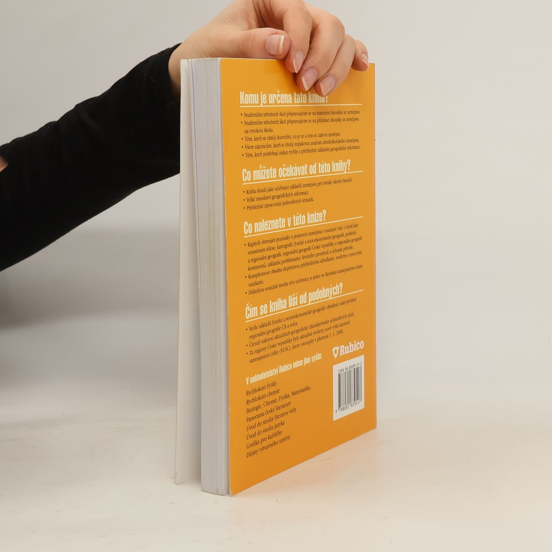 Pro studenty připravující se k maturitě nebo přijímací zkoušce, všem, kteří se chtějí dozvědět co je to a čím se zabývá zeměpis. Vedle základů fyzické a socioekonomické geografie obsahuje přehled regionální geografie ČR a světa, přehledné tabulky, souhrny a testové otázky. Zabývá se také prací se školními zeměpisnými atlasy.