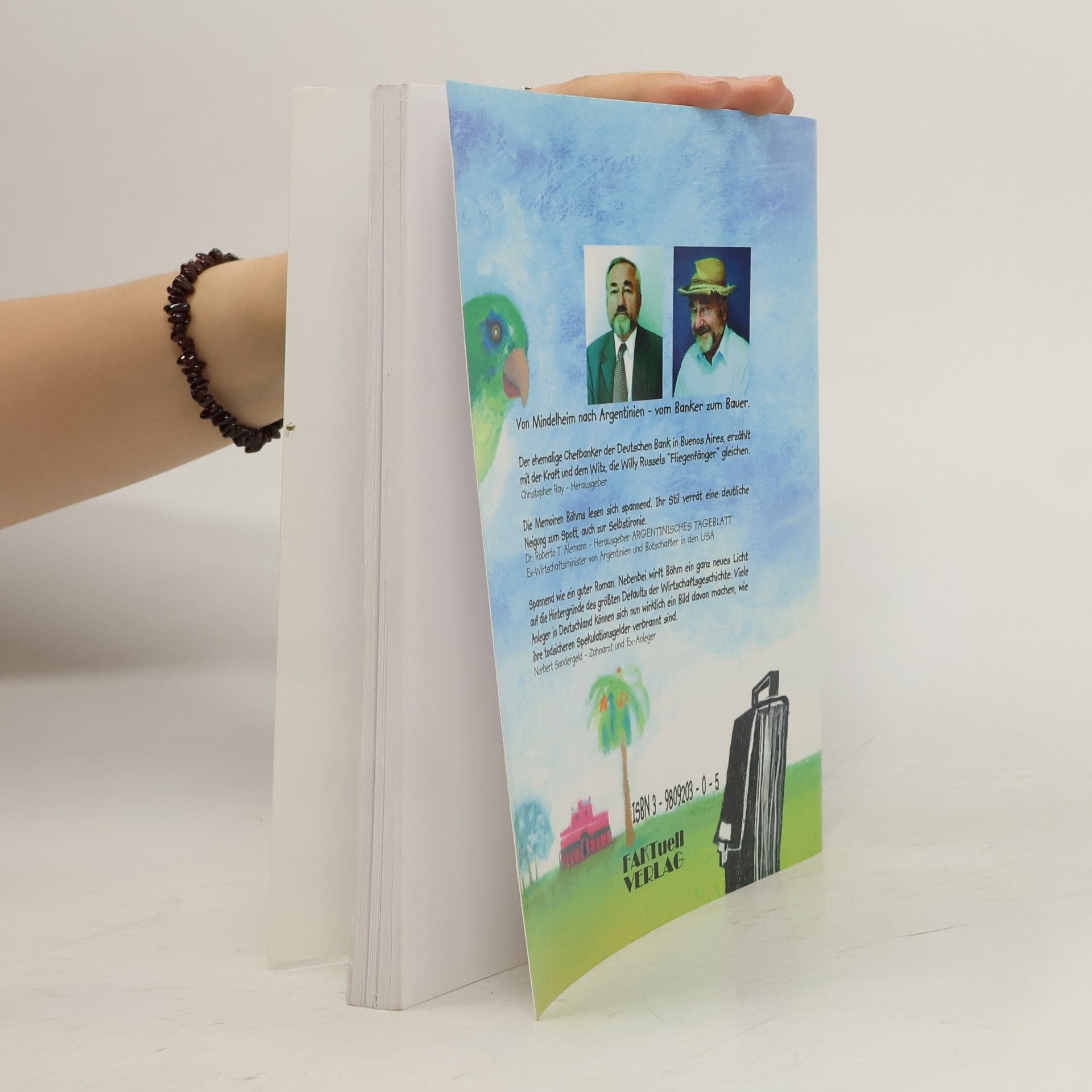 Wie ich zu den Kühen kam * ISBN 3-9809203-0-5 * Von Chefsessel der Deutschen Bank zum Kuh-Bauer in der Pampa Der ehemalige Chefbanker der Deutschen Bank in Buenos Aires, erzählt mit der Kraft und dem Witz, die Willy Russels „Fliegenfänger“ gleichen. Christopher Ray - Herausgeber * FAKTuell-Verlag *** Die Memoiren Böhms lesen sich spannend. Ihr Stil verrät eine deutliche Neigung zum Spott, auch zur Selbstironie. Dr. Roberto T. Alemann - Herausgeber ARGENTINISCHES TAGEBLATT Ex-Wirtschaftsminister von Argentinien und Botschafter in den USA *** Spannend wie ein guter Roman. Nebenbei wirft Böhm ein ganz neues Licht auf die Hintergründe des größten Defaults der Wirtschaftsgeschichte. Viele Anleger in Deutschland können sich nun wirklich ein Bild davon machen, wie ihre todsicheren Spekulationsgelder verbrannt sind. Norbert Sondergeld - Zahnarzt und Ex-Anleger