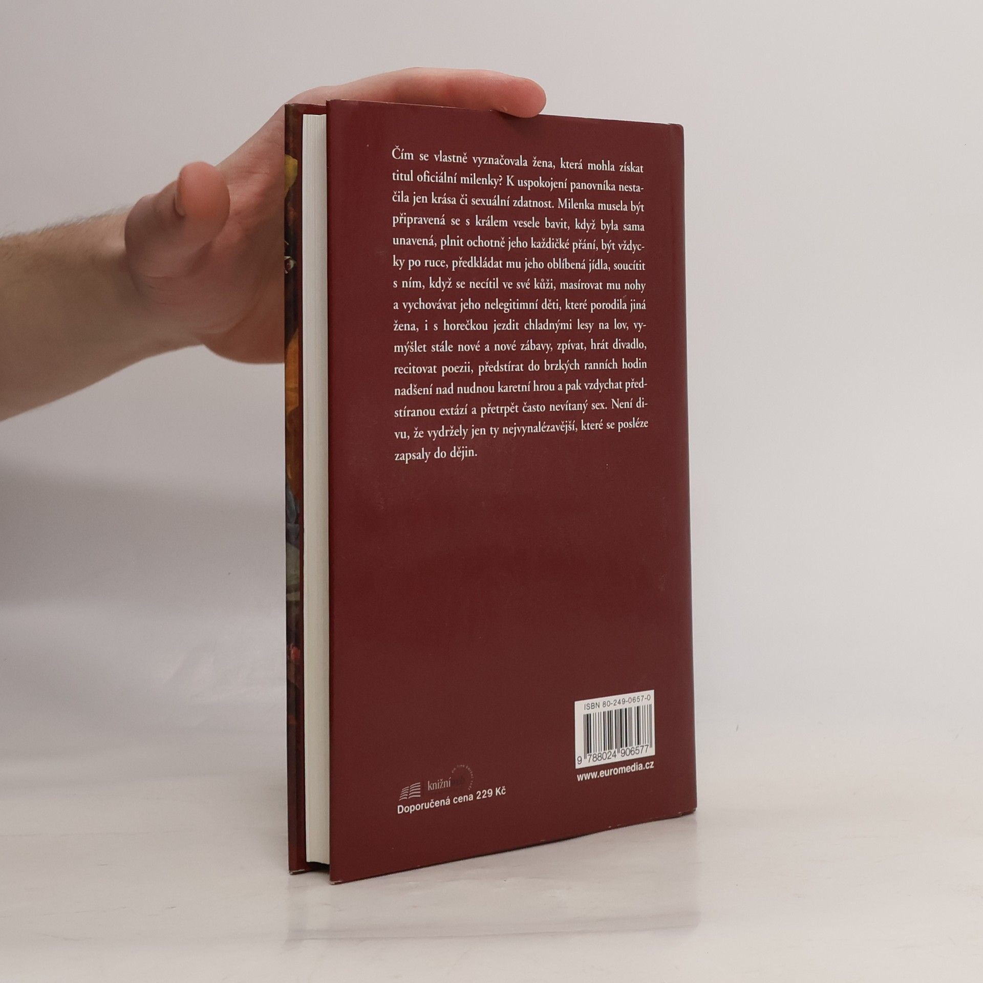 Podtitul: 500 let nevěry, rivality a moci Milostný život známých evropských panovníků a osudy slavných metres 17. a 18. století. Název knihy tentokrát plně vystihuje její obsah. Autorka se skutečně zaměřila pouze na milostný život vybraných evropských panovníků, zvláště pak francouzských a anglických. Sledujeme příběhy velkých metres 17. a 18. století, jak se objevovaly na dvoře známých králů. Autorka se snaží přiblížit jejich život a nelehký úděl, kdy zájem krále byl nadřazen i nemoci a osobnímu nepohodlí milenky. Na druhé straně poznáváme i vychytralost, ziskuchtivost a rozhazovačnost těchto žen, které získávaly a utrácely obrovské sumy ze státních pokladen. Autorka věnuje pozornost také královským levobočkům a osudům metres po smrti krále. V posledních kapitolách jsou zmínky o milostných příbězích dosud žijících evropských princů a králů.