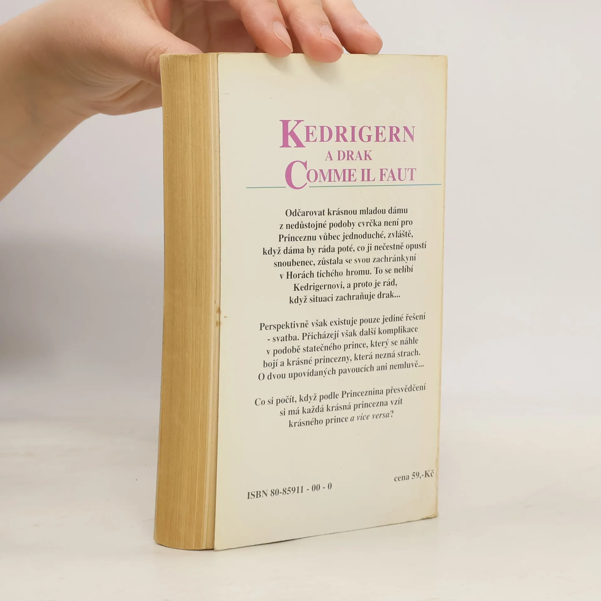 5. kniha série o Kedrigernovi. Odčarovat krásnou mladou dámu z nedůstojné podoby cvrčka není pro Princeznu vůbec jednoduché, zvláště, když dáma by ráda poté, co ji nečestně opustí snoubenec, zůstala se svou zachránkyní v Horách tichého hromu. To se nelíbí Kedrigernovi, a proto je rád, když situaci zachraňuje drak… Perspektivně však existuje pouze jediné řešení – svatba. Přicházejí však další komplikace v podobě statečného prince, který se náhle bojí a krásné princezny, která nezná strach. O dvou upovídaných pavoucích ani nemluvě… Co si počít, když podle Princeznina přesvědčení si má každá krásná princezna vzít krásného prince a vica versa? Přeložil Petr Caha.