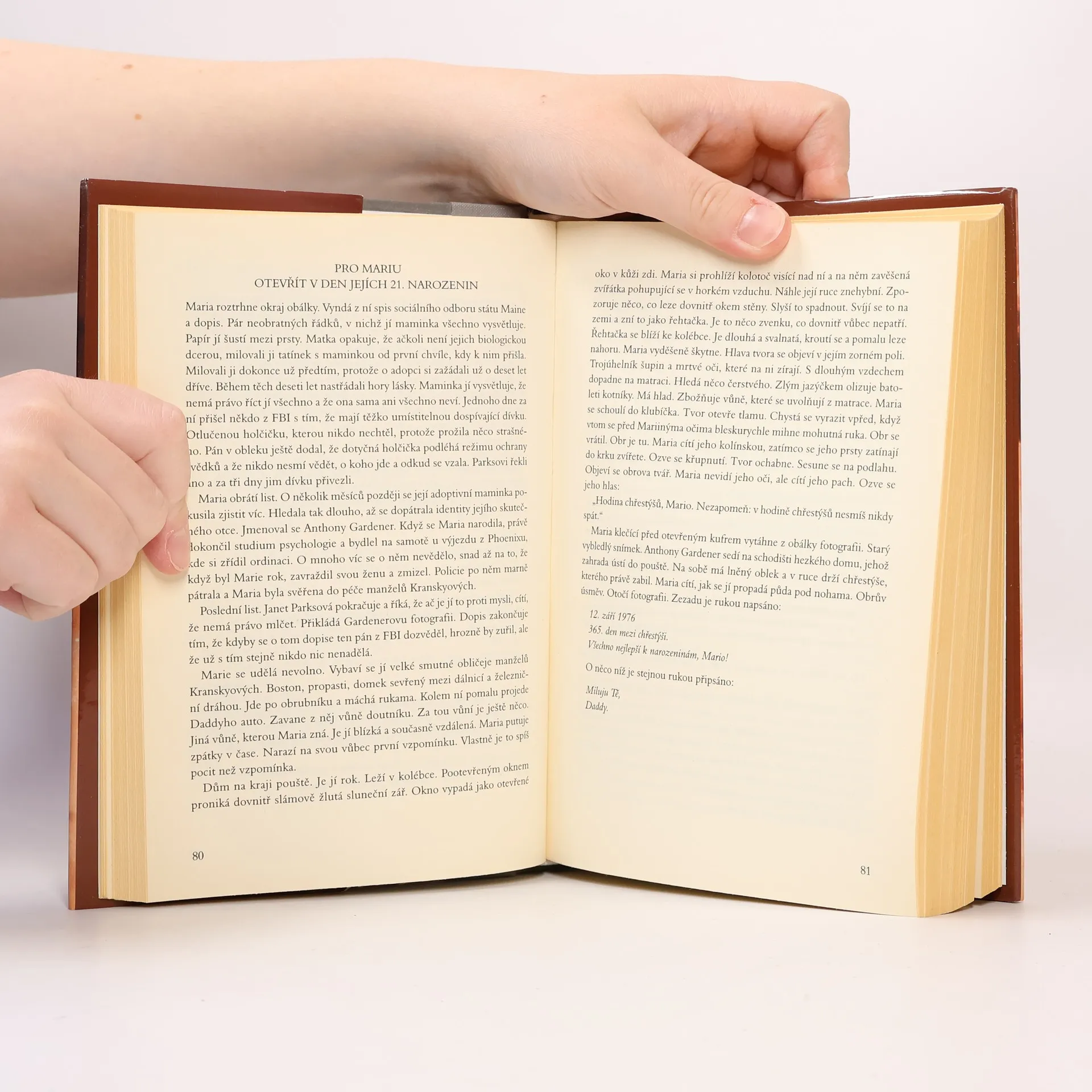 Patrick Graham má jedinečný dar pohrávat si s našimi primárními strachy, nadějemi a nejniternějšími pocity. Jeho román Apokalypsa podle Marie otevírá cestu, která vede přímo na konec světa. Budete se bát, nikdy se však nebudete chtít vrátit zpět.Píše se červenec 2008. Zraky celého světa jsou upřeny na ničivou živelní pohromu, která pustoší pobřeží Ameriky. Několik vědců, kteří za záhadných okolností postupně umírají, však dobře ví, že na této katastrofě není nic přirozeného a že je předzvěstí opětovného propuknutí odvěkého boje, v němž se nehraje o ni menšího než vyhynutí lidského druhu.Začíná závod s časem, v němž poslední naději lidstva představuje jedenáctiletá dívka Holly a policejní psycholožka Maria Parksová, čtenářům dobře známá z autorova předchozího románu Evangelium podle Satana, která zaslechne Hollyino volání o pomoc. Zatímco se apokalypsa blíží, Holly se bez vlastního přičinění stává nositelkou obrovské moci a hlavním aktérem hry, v níž se rozhoduje o osudu lidstva.