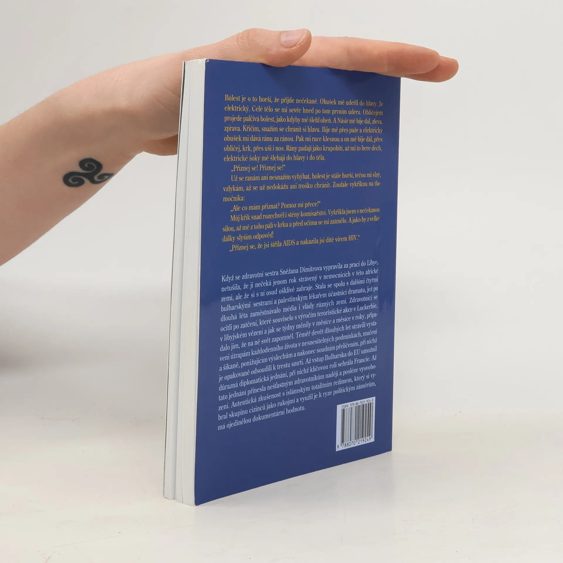 Autentický příběh bulharských zdravotních sester vězněných v Libyi a odsouzených k trestu smrti Příběh bulharských zdravotních sester vězněných v Libyi a odsouzených k trestu smrti. Jejich osud vzbudil velký zájem veřejného mínění na celém světě a přiměl celou řadu významných politiků, aby k němu zaujali otevřený postoj. Příběh začíná návštěvou paní Cecílie Sarkozyové u odsouzených Bulharek. Autorka vypráví o svém životě a práci zdravotní sestry v Bulharsku. V roce 1998 požádala o práci v Libyi v naději na lepší plat, půl roku po příjezdu však byla zatčena a obviněna spolu s dalšími, že více než 400 dětem záměrně podali v nemocnici v Benghází krev infikovanou HIV. Zdravotníci vinu popírají. Libyjské soudy jim stanovily trest smrti. Jejich rozhodnutí změnila až v červenci 2007 Nejvyšší soudní rada Libye, která skupině vyměřila trest doživotního vězení. V poslední části uvádí autorka své poznatky o libyjské policii a libyjském soudnictví, o životě ve vězení, výsleších i mučení. Postupně se k vězněným dostávají zástupci bulharské ambasády, i vyšší političtí představitelé, ale nikdo jim nedokáže pomoci. Až po intervencích EU a návštěvě paní Sarkozyové v červenci 2007 přichází náhlé osvobození a návrat do Bulharska.