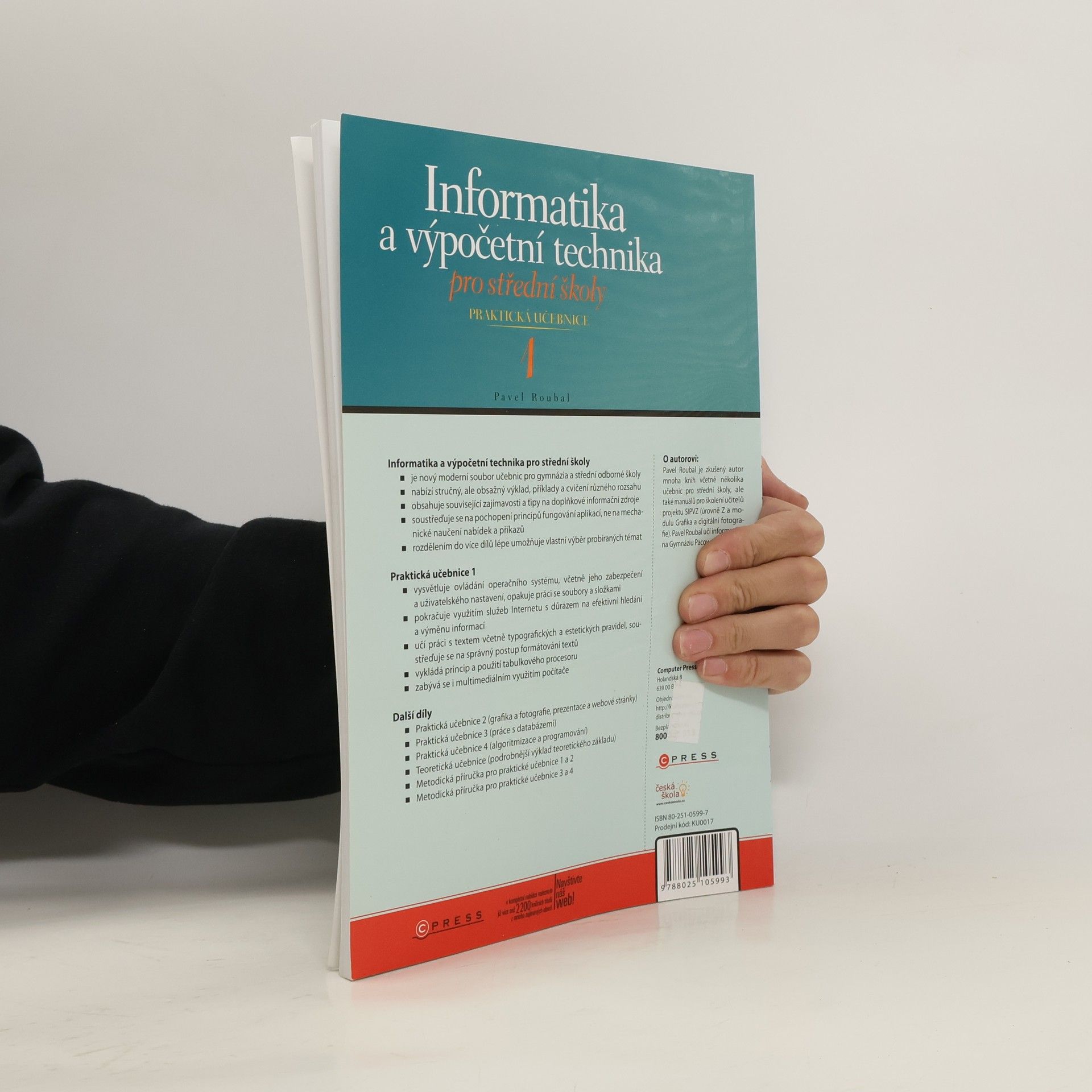 Informatika a výpočetní technika pro střední školy je moderní soubor učebnic určený pro gymnázia, střední odborné školy a učiliště. Nabízí stručný a obsáhlý výklad, příklady a cvičení různých úrovní, včetně zajímavostí a tipů na doplňkové informační zdroje. Důraz je kladen na pochopení principů fungování aplikací, nikoli na mechanické naučení příkazů. Díky rozdělení do více dílů je umožněn vlastní výběr témat. Praktická učebnice 1 shrnuje principy práce počítače, ovládání operačního systému, jeho zabezpečení a uživatelské nastavení. Obsahuje opakování práce se soubory a složkami, využití Internetu s důrazem na efektivní hledání a výměnu informací. Učí práci s textem, typografickými a estetickými pravidly, a správným postupem formátování. Dále se věnuje principu a využití tabulkového procesoru a multimediálnímu využití počítače. Další díly zahrnují grafiku, tvorbu prezentací a webových stránek, práci s databázemi, algoritmizaci a programování, a teoretickou učebnici s podrobnějším výkladem. K dispozici jsou také metodické příručky pro praktické učebnice. Autor Pavel Roubal, zkušený autor učebnic a učitel informatiky, přináší praktické poznatky z výuky.