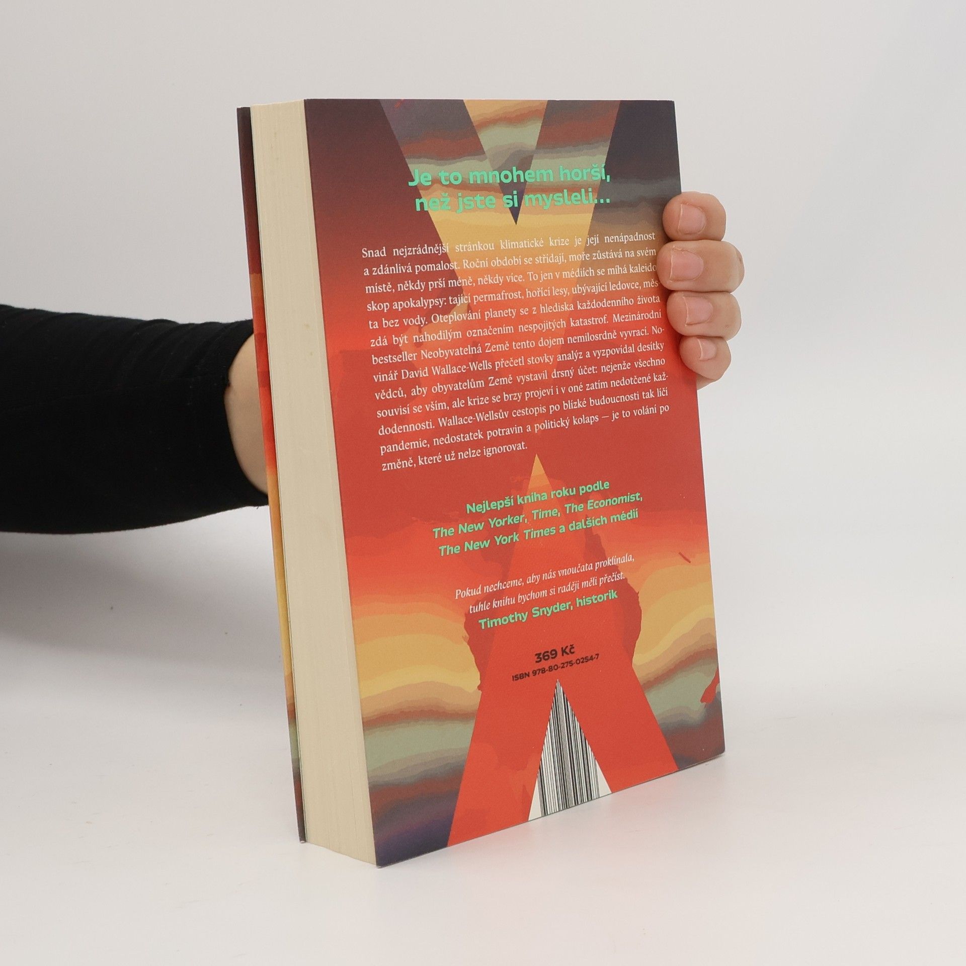 Život po oteplení. Je to mnohem horší, než jste si mysleli… Možná nejzrádnější stránka klimatické krize je její nenápadnost a zdánlivá pomalost. Roční období se střídají, moře zůstává na svém místě, někdy prší méně, někdy více. To jen v médiích se míhá kaleidoskop apokalypsy: tající permafrost, hořící lesy, ubývající ledovce, města bez vody a tak dále. Zahřívání planety se z hlediska každodenního života zdá být nahodilým označením nespojitých katastrof. Mezinárodní bestseller Neobyvatelná Země tento dojem nemilosrdně bourá. Novinář David Wallace-Wells přečetl stovky analýz a vyzpovídal desítky vědců, aby předložil obyvatelům Země drsný účet: nejenže všechno souvisí se vším, ale brzy se krize projeví i v oné zatím nedotčené každodennosti. Wallace-Wellsův cestopis po blízké budoucnosti tak lemují nedostatek potravin, pandemie, politický kolaps — a volání po změně, které už nelze ignorovat.