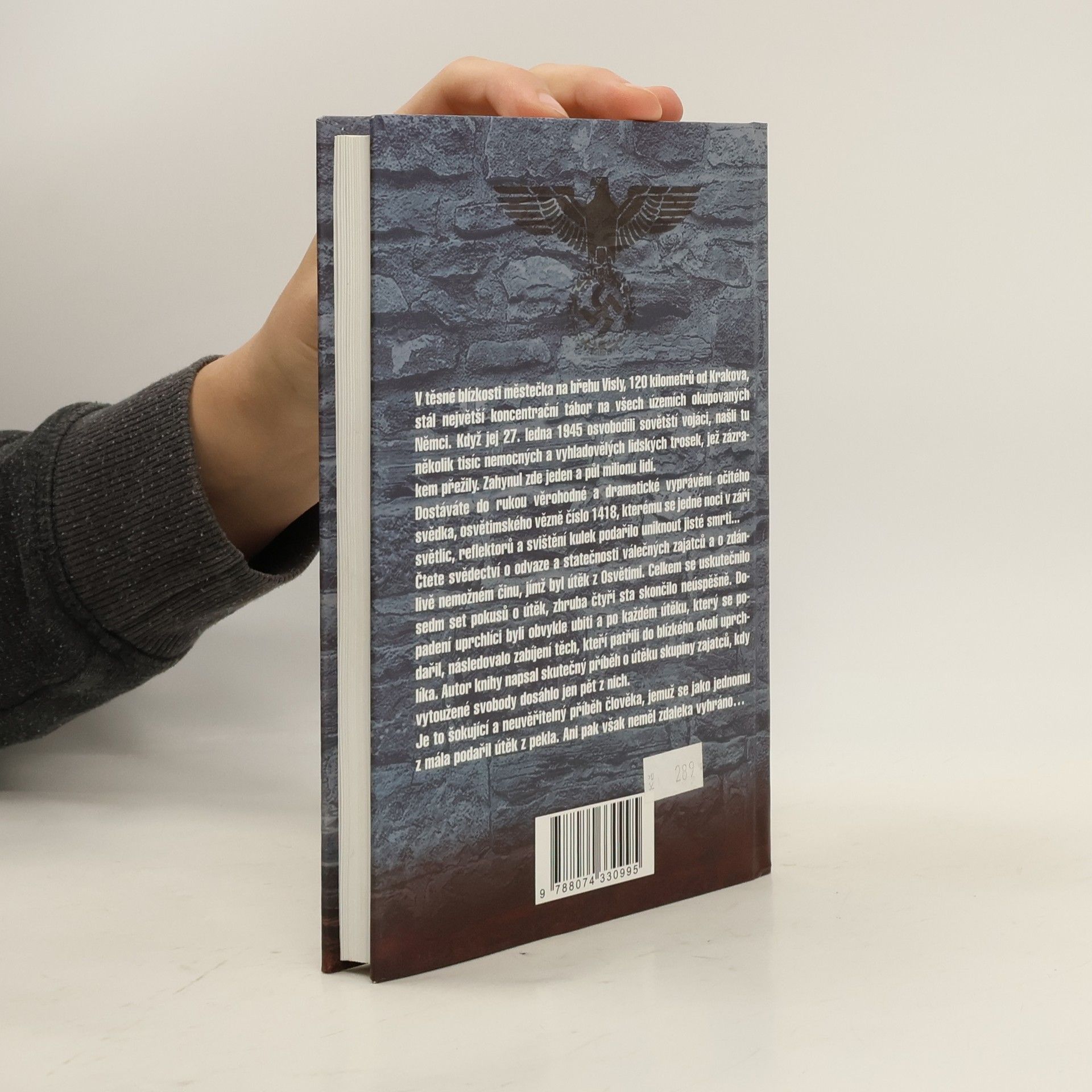 V těsné blízkosti městečka na břehu Visly, 120 kilometrů od Krakova, stál největší koncentrační tábor na všech územích okupovaných Němci. Když jej 27. ledna 1945 osvobodili sovětští vojáci, našli tu několik tisíc nemocných a vyhladovělých lidských trosek, jež zázrakem přežily. Zahynul zde jeden a půl milionu lidí. Dostáváte do rukou věrohodné a dramatické vyprávění očitého svědka, osvětimského vězně číslo 1418, kterému se jedné noci v záři světlic, reflektorů a svištění kulek podařilo uniknout jisté smrti… Čtete svědectví o odvaze a statečnosti válečných zajatců a o zdánlivě nemožném činu, jímž byl útěk z Osvětimi. Celkem se uskutečnilo sedm set pokusů o útěk, zhruba čtyři sta skončilo neúspěšně. Dopadení uprchlíci byli obvykle ubiti a po každém útěku, který se podařil, následovalo zabíjení těch, kteří patřili do blízkého okolí uprchlíka. Autor knihy napsal skutečný příběh o útěku skupiny zajatců, kdy vytoužené svobody dosáhlo jen pět z nich. Je to šokující a neuvěřitelný příběh člověka, jemuž se jako jednomu z mála podařil útěk z pekla. Ani pak však neměl zdaleka vyhráno…