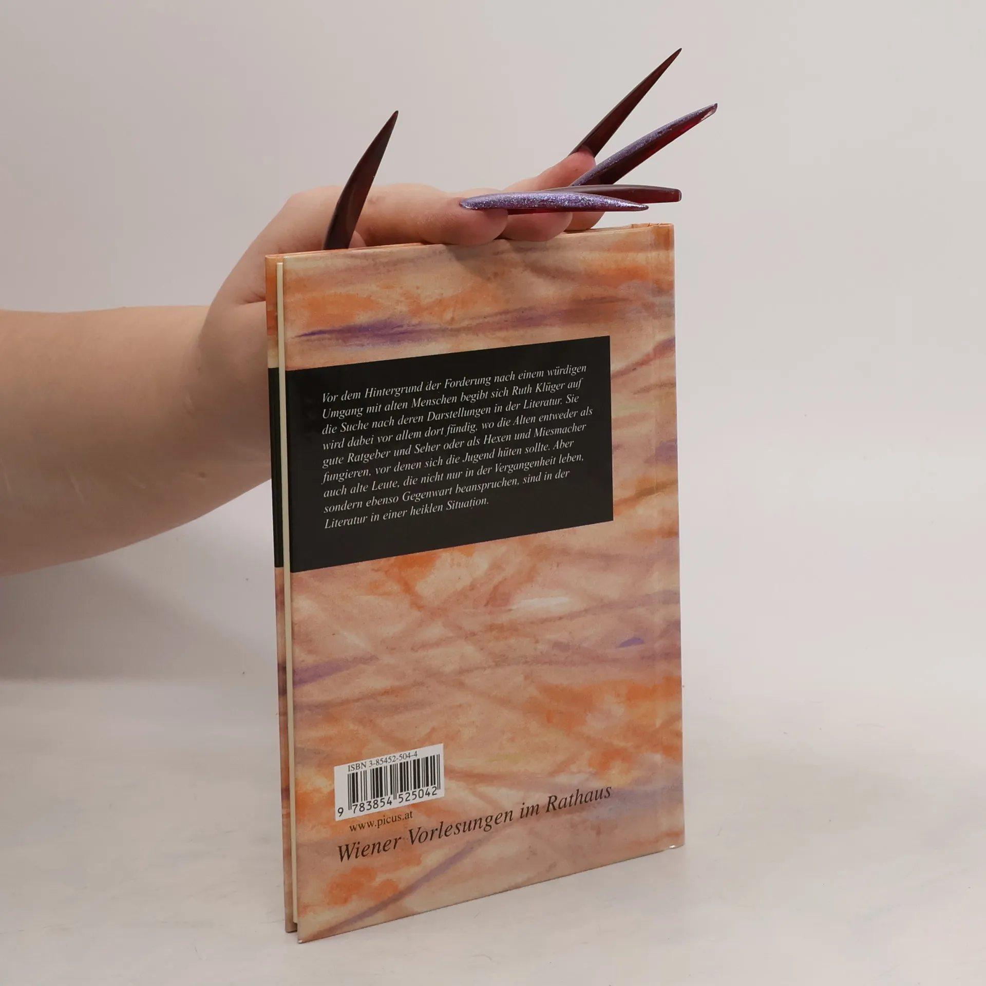 Vor dem Hintergrund der Forderung nach einem würdigen, am Dialog orientierten Umgang mit alten Menschen begibt sich Ruth Klüger auf die Suche nach deren Darstellungen in der Literatur. Und wird dabei vor allem dort fündig, wo die Alten entweder als gute Ratgeber und Seher oder als Hexen und Miesmacher fungieren, vor denen sich die Jugend hüten sollte. Ebenso präsent ist das Bild der alten Eltern, die abtreten und deren Kinder bereits gierig das Erbe beschlagnahmen.Zum Verlust der gesellschaftlichen Stellung kommt die fortschreitende Körper- und Geistesschwäche, was Klüger zu dem Schluss fü »Alte Leute, die nicht nur in der Vergangenheit leben und nicht nur für die Zukunft ihrer Kinder Sorge tragen wollen, sondern auch Gegenwart beanspruchen, sind, in der Literatur zumindest, in einer heiklen Situation und schlittern auf Glatteis.«