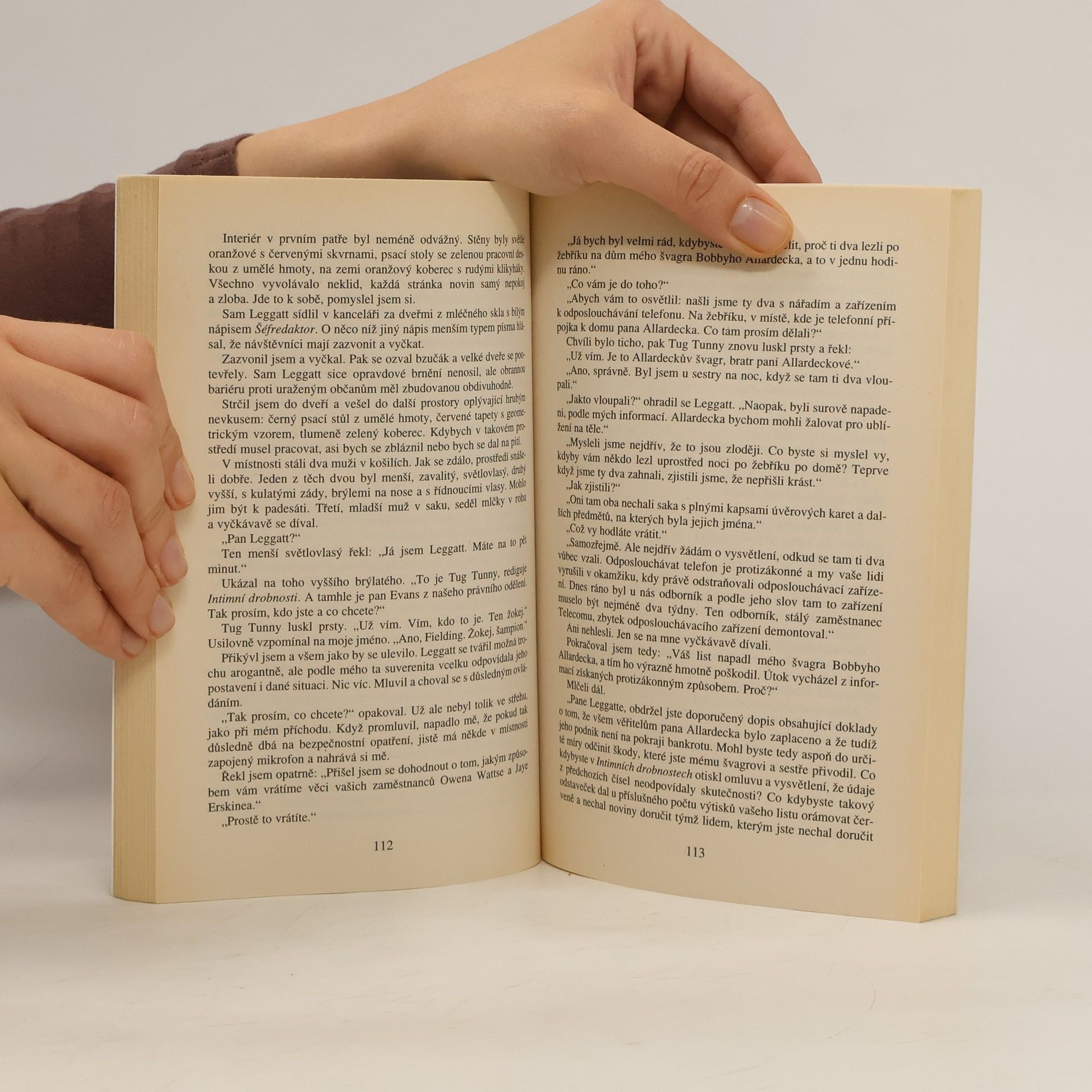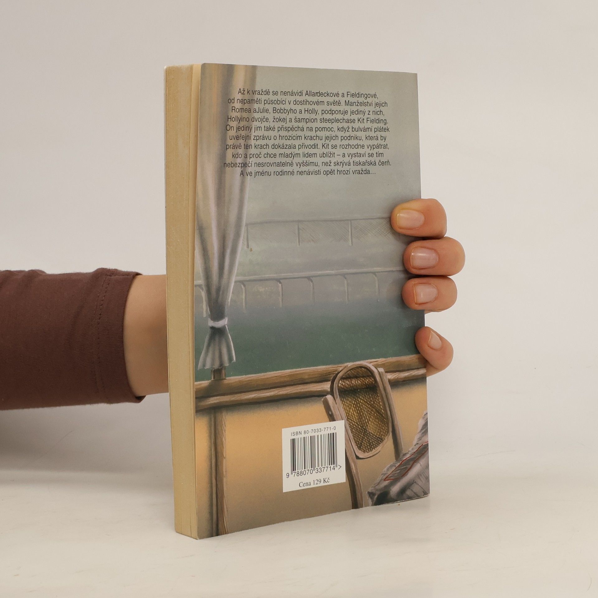 Až k vraždě se nenávidí Allardeckové a Fieldingové, od nepaměti působící v dostihovém světě. Manželství jejich Romea a Julie, Bobbyho a Holly, podporuje jediný z nich, Hollyino dvojče, žokej a šampion steeplechase Kit Fielding. On jediný jim také přispěchá na pomoc, když bulvární plátek uveřejní zprávu o hrozícím krachu jejich podniku, která by právě ten krach dokázala přivodit. Kit se rozhodne vypátrat, kdo a proč chce mladým lidem ublížit - a vystaví se tím nebezpečí nesrovnatelně vyššímu, než skrývá tiskařská čerň. A ve jménu rodinné nenávisti opět hrozí vražda...