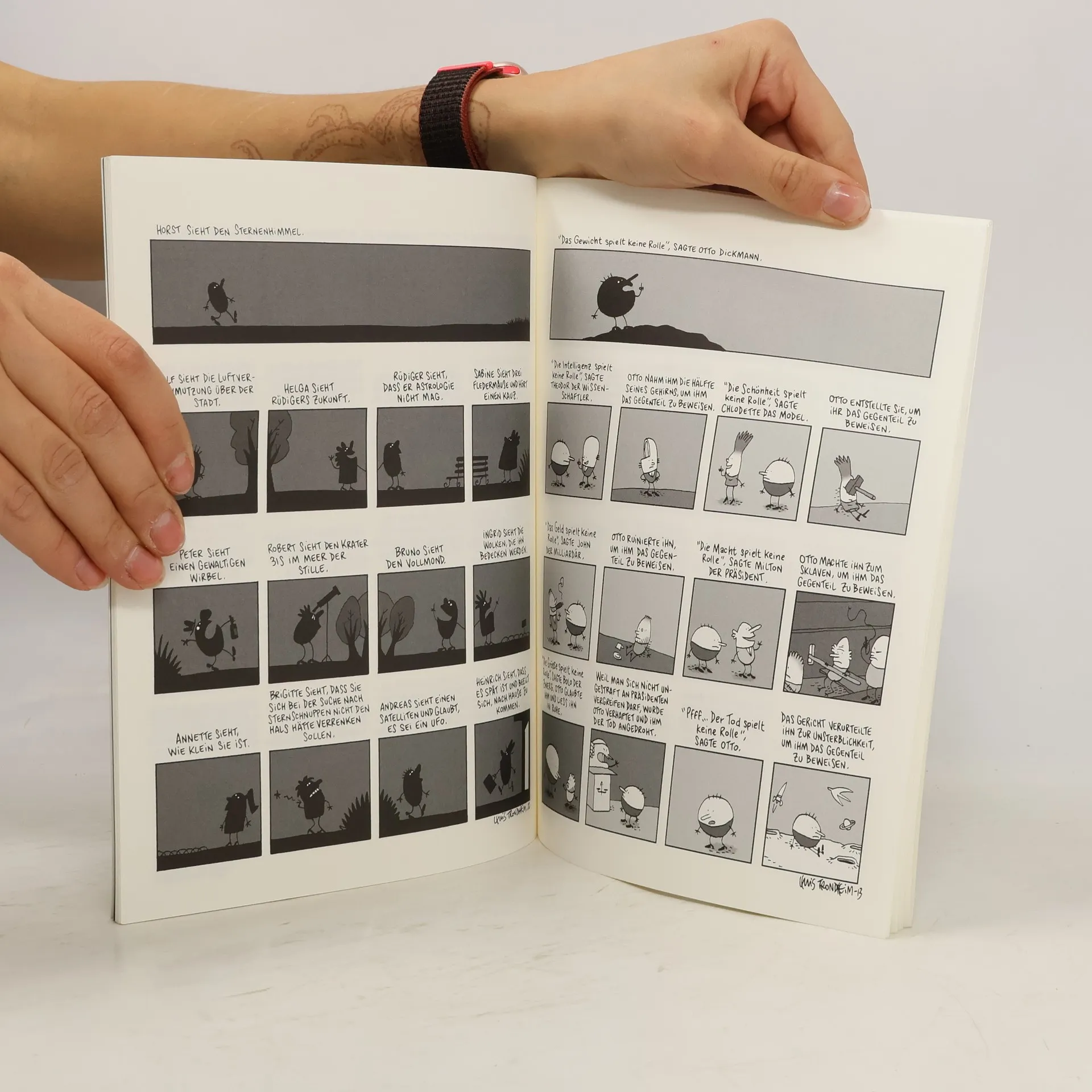 Für „Die Fabelhaften“ hat sich Lewis Trondheim eine strenge formale Vorgabe auferlegt: In 12 Panels pro Seite erzählt er 30 ganz und gar außergewöhnliche Geschichten. Der freundliche Marsianer, der Mann, der auf alle Fragen eine Antwort weiß oder der Fluch der verschwindenden Präsidenten dienen Trondheim als absurde Grundlagen für Fabeln, die sein humoristisches Talent zur vollen Entfaltung kommen lassen. „Die Fabelhaften“ sind in Format und Umfang identisch mit dem erfolgreichen Band „Apokalyptische Schöpfungen“.