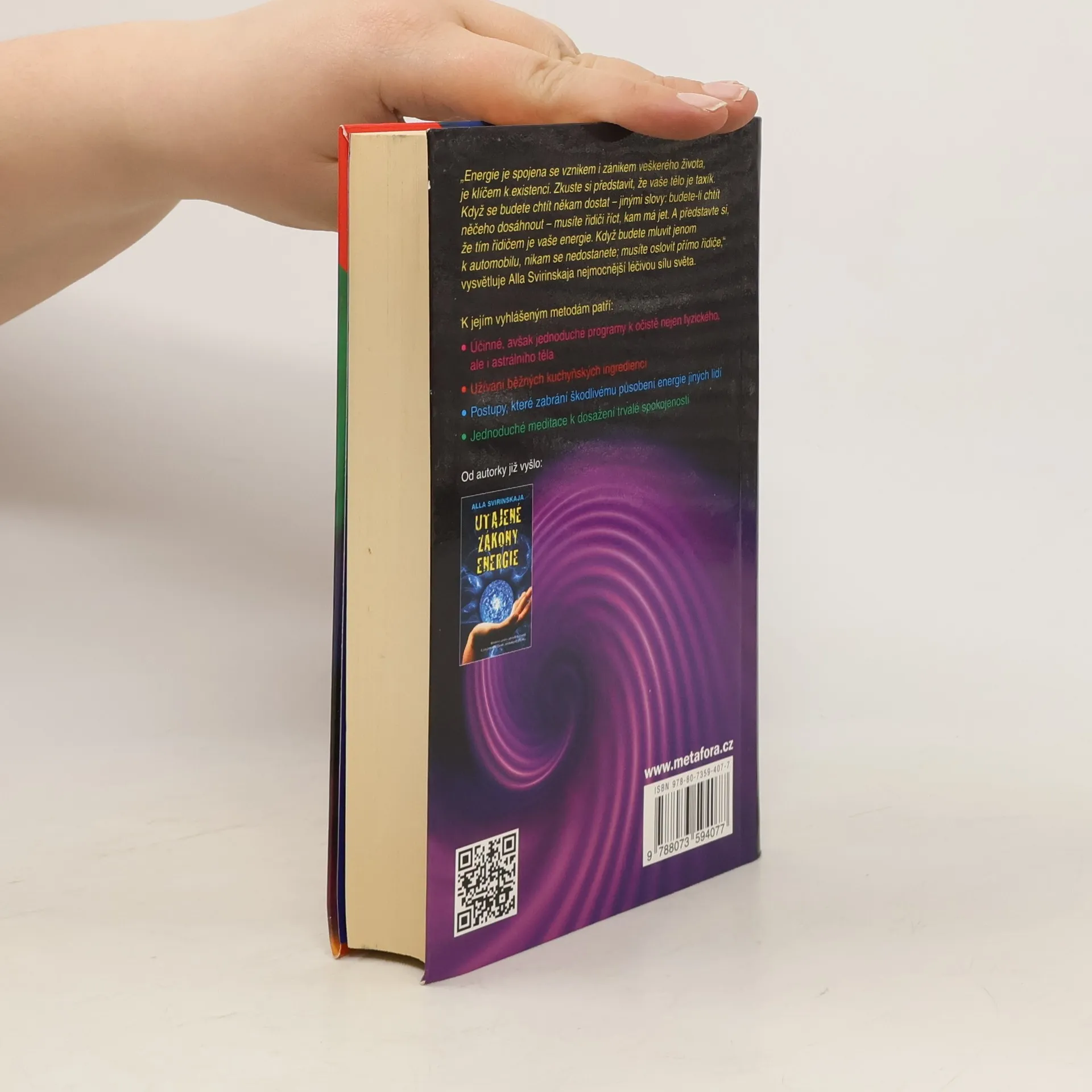 Tajemství celkové pohody spočívá ve zvládnutí životní energie. Všechny ty diety, potravinové doplňky, cvičení a terapie mohou fungovat (konečně!) jen tehdy, jestliže je dokážete propojit se samou podstatou energetického toku. Tato práce odhaluje zapomenutou moudrost léčitelských postupů z celého světa, včetně tradičních metod, jež Alla Svirinskaja zdědila po ruských předcích. Ve své knize nás poprvé seznamuje se svým unikátním postojem k dávným postupům - přizpůsobených ovšem modernímu člověku. Její ucelený přístup k fyzickým, emočním, mentálním a spirituálním oblastem změní váš život. Praktikujte Allin program krok za krokem a staňte se vlastními léčiteli.