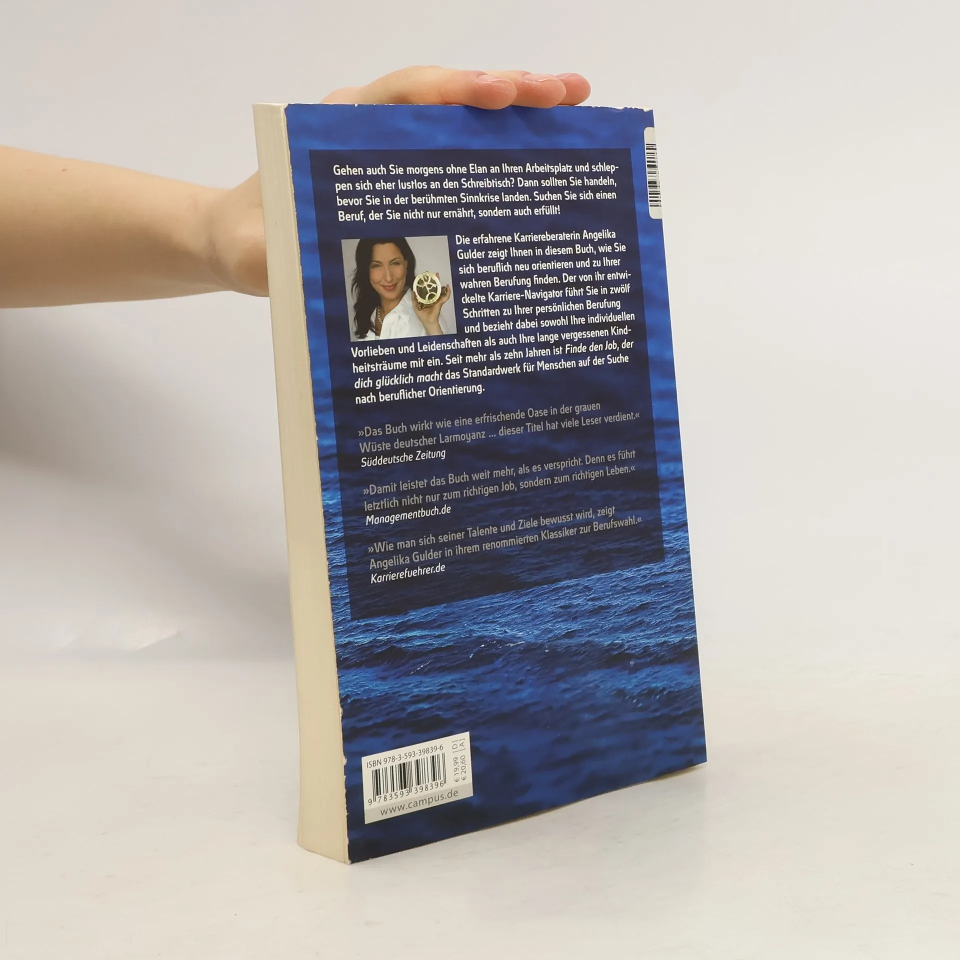Seit mehr als zehn Jahren unterstützt „Finde den Job, der dich glücklich macht“ tausende Menschen auf der Suche nach ihrer Berufung und einem erfüllten Berufsleben. Der Karriere-Navigator ist die Orientierungshilfe auf dem Weg zu mehr Glück und Zufriedenheit im(Berufs-)Leben. Egal wie alt, in welcher Lebensphase oder wo Sie sind: Der Beruf Ihrer Träume ist zum Greifen nah! „Wie man sich seiner Talente und Ziele bewusst wird, zeigt Angelika Gulder in ihrem renommierten Klassiker zur Berufswahl.“ Karriereführer