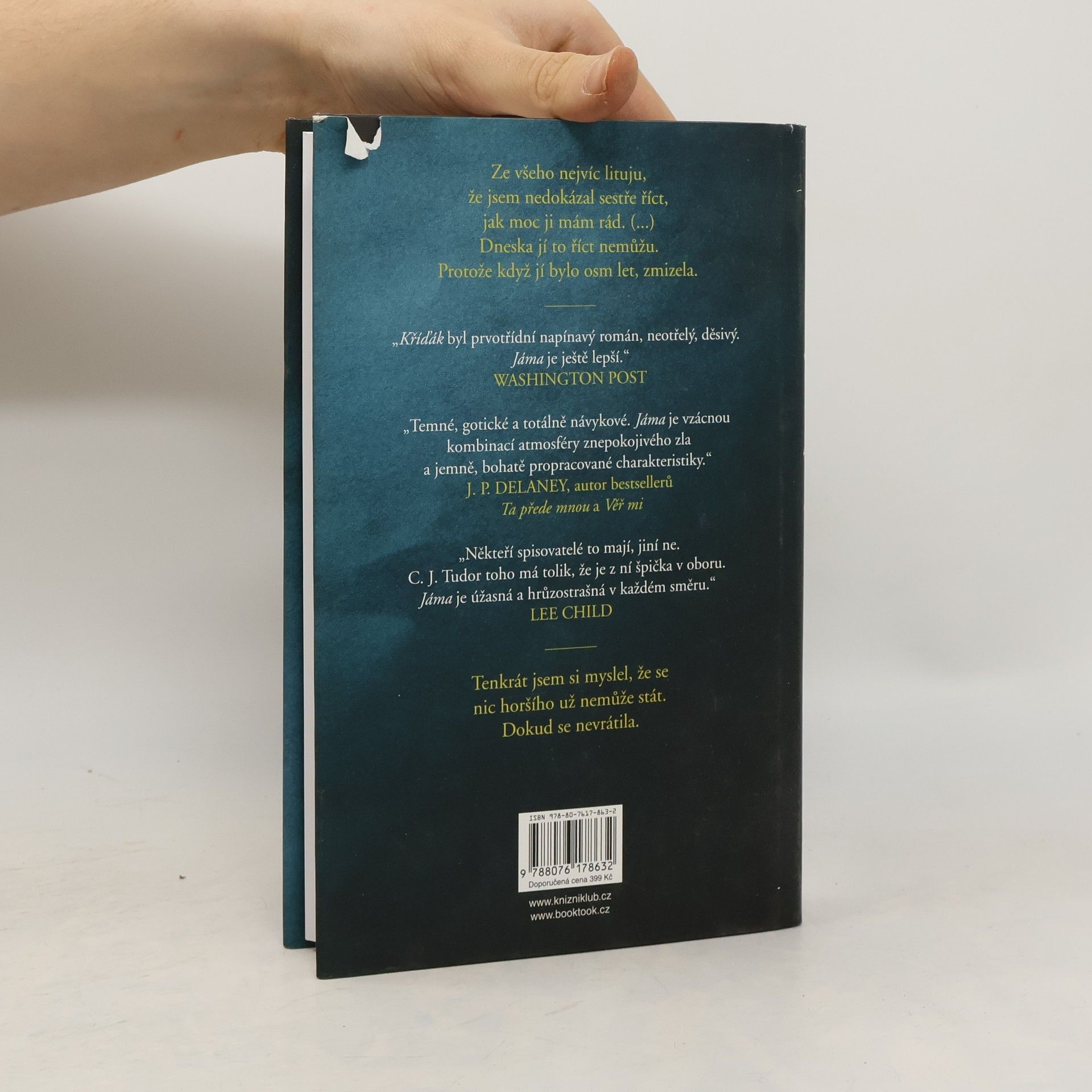 Kříďák, drásavý a děsivý psychothriller C. J. Tudor, se stal nejúspěšnější knižní prvotinou roku 2018. Nyní je tu Jáma, příběh, v němž autorka co do hrůznosti a napětí ještě přitvrdila... Joe se nikdy nechtěl vrátit do rodného Arnhillu. Ne potom, co zažil se svou partou: šikanu, zradu, sebevraždu. Ne potom, co zmizela jeho sestra Annie. Ne potom, co přišel o rodiče. Ale Joe nemá na vybranou. Protože to, co se kdysi stalo Annie, se děje zase. Protože minulost má ve zvyku se vracet. Protože nejhorší den Joeova života nebyl ten, kdy se jeho sestra ztratila, ale ten, kdy se vrátila.