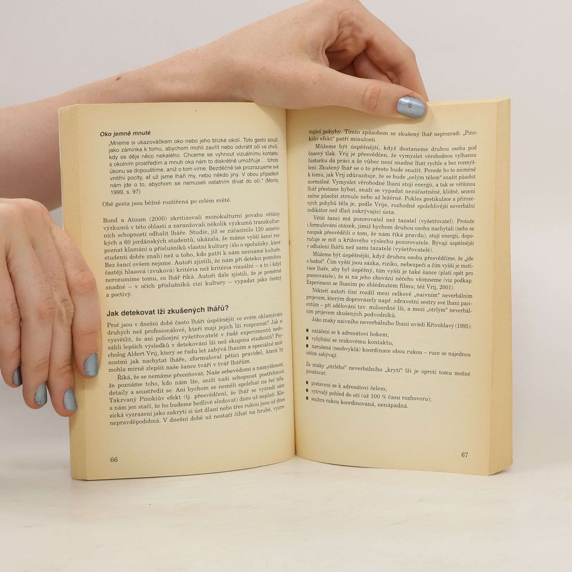 Komunikace mezi lidmi zajímá jak běžné laiky, tak širokou škálu odborníků, a to od novinářů a pracovníků reklamy po psychoterapeuty a lékaře. Tím spíše nás všechny zajímá, proč nás druzí v komunikaci často klamou a jaké prostředky k tomu používají. Poprvé v češtině vychází knížka, která se těmto otázkám systematicky věnuje. Přestože výchozím oborem autora je psychologie, text má zřetelné mezioborové přesahy. Svou povahou spadá do disciplíny nazývané někdy "komunikační studia". Autorovou snahou je skloubit vysoký odborný standard se srozumitelným a seriózním popularizačním výkladem.