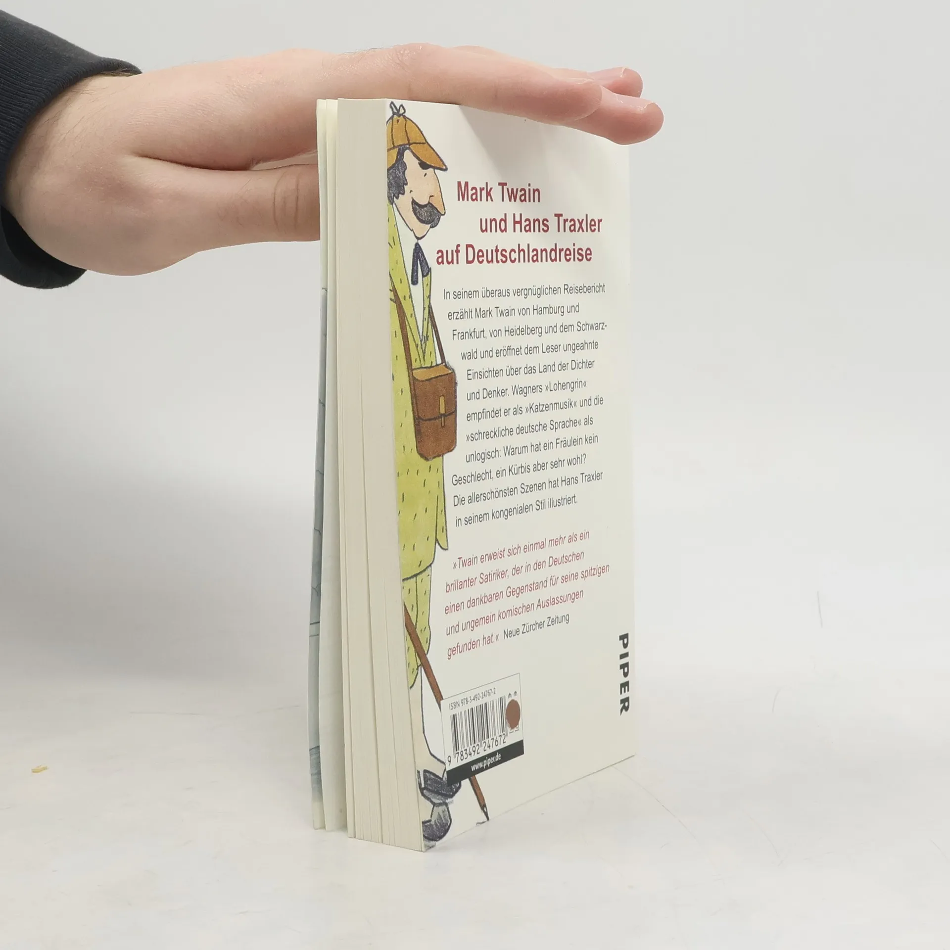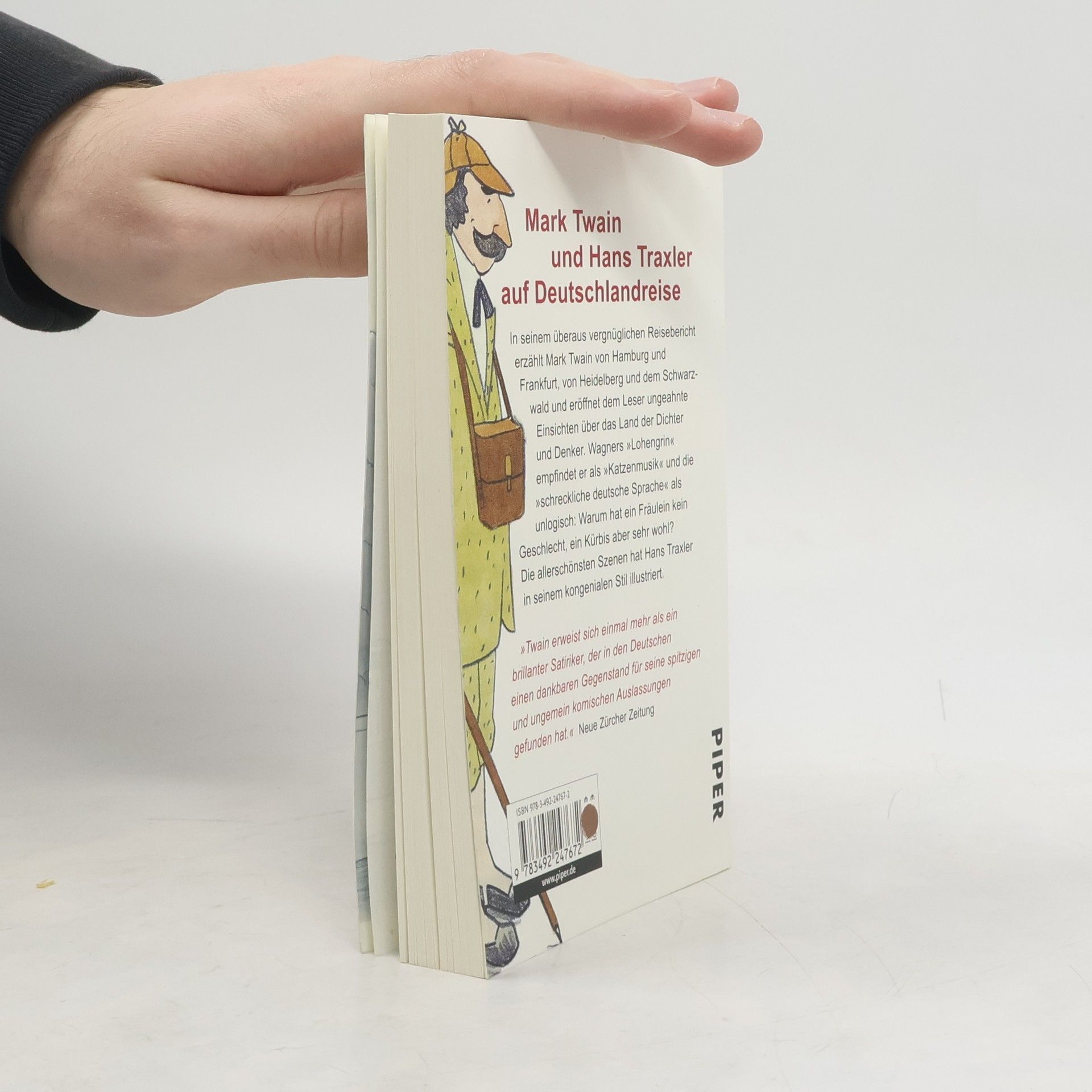 In seinem überaus vergnüglichen Reisebericht erzählt Mark Twain von Hamburg und Frankfurt, von Heidelberg und dem Schwarzwald und eröffnet dem Leser ungeahnte Einsichten über das Land der Dichter und Denker. Richard Wagners »Lohengrin« empfindet er als »Katzenmusik« und die »schreckliche deutsche Sprache« als unlogisch: Warum hat ein Fräulein kein Geschlecht, ein Kürbis aber sehr wohl? Die allerschönsten Szenen hat Hans Traxler in seinem kongenialen Stil illustriert.
