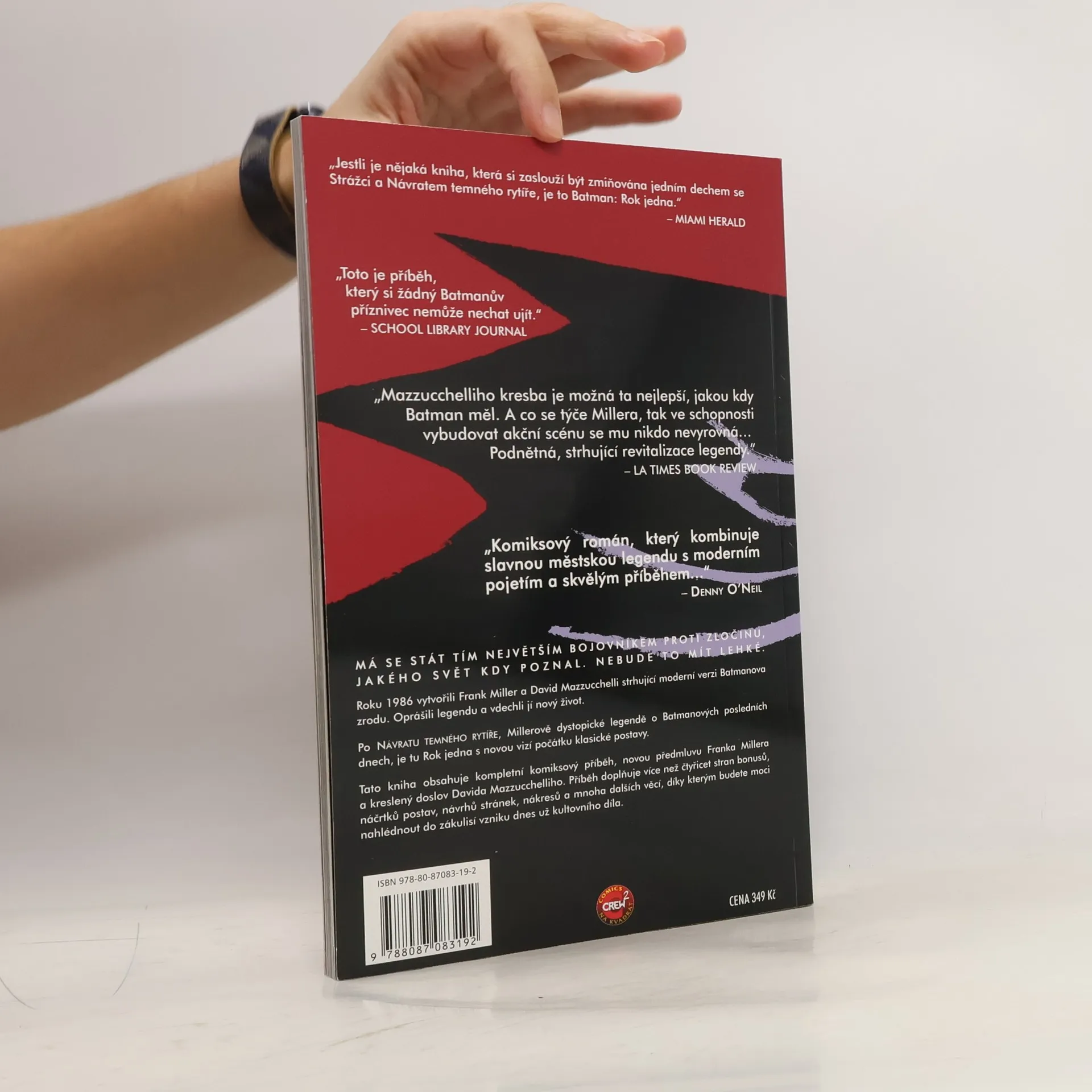 Rok jedna sleduje příchod Bruce Waynea do Gothamu, kde si pomalu začíná uvědomovat, že stát se postrachem zločinců nebude zase tak snadné. Zároveň s ním přijíždí i čerstvě ženatý poručík Gordon, který vstupuje do policejního sboru a zjišťuje, že poctivý polda to v něm nebude mít snadné. Temný a syrový příběh patří spíš do kategorie „detektivka drsné školy“ než superhrdinský komiks. I v podání malíře Davida Mazzucchelliho je Gotham spíše „do špíny zamilované velkoměsto“ než gotický lunapark známý z filmů. U knihy je množství bonusů, včetně původních náčrtků, scénářů a minikomiksů!