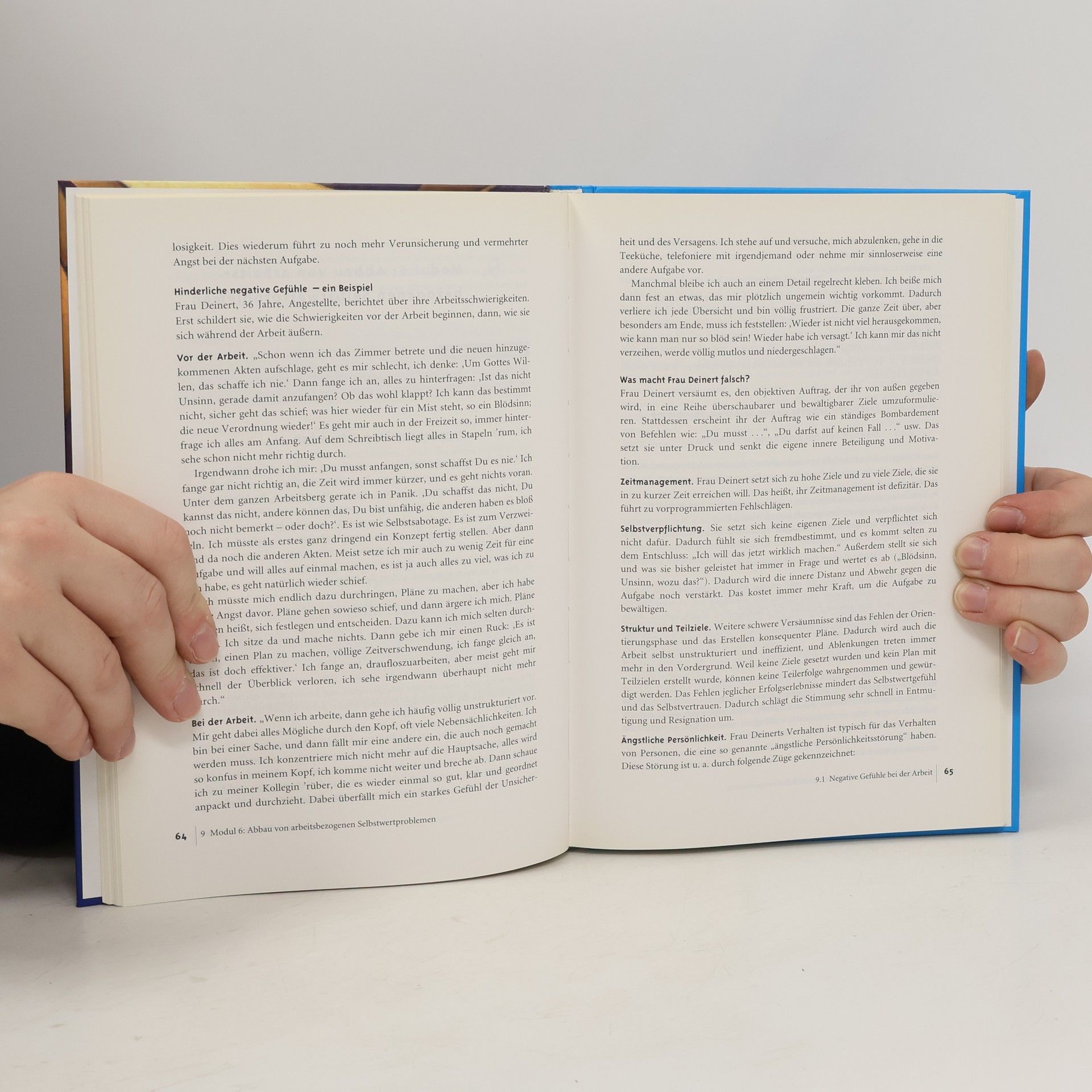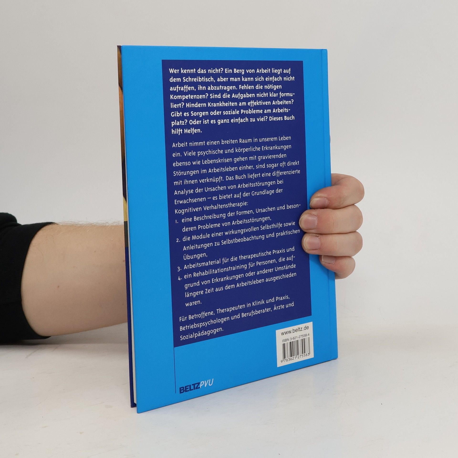 Wer kennt das nicht? Ein Berg von Arbeit liegt auf dem Schreibtisch, aber man kann sich einfach nicht aufraffen, ihn abzutragen. Fehlen die nötigen Kompetenzen? Sind die Aufgaben nicht klar formuliert? Hindern Krankheiten am effektiven Arbeiten? Gibt es Sorgen oder soziale Probleme am Arbeitsplatz? Oder ist es ganz einfach zu viel? Dieses Buch hilft Helfen. Arbeit nimmt einen breiten Raum in unserem Leben ein. Viele psychische und körperliche Erkrankungen ebenso wie Lebenskrisen gehen mit gravierenden Störungen im Arbeitsleben einher, sind sogar oft direkt mit ihnen verknüpft. Das Buch liefert eine differenzierte Analyse der Ursachen von Arbeitsstörungen bei Erwachsenen - es bietet auf der Grundlage der Kognitiven Verhaltenstherapie: 1. eine Beschreibung der Formen, Ursachen und besonderen Probleme von Arbeitsstörungen, 2. die Module einer wirkungsvollen Selbsthilfe sowie Anleitungen zu Selbstbeobachtung und praktischen Übungen, 3. Arbeitsmaterial für die therapeutische Praxis und 4. ein Rehabilitationstraining für Personen, die aufgrund von Erkrankungen oder anderer Umstände längere Zeit aus dem Arbeitsleben ausgeschieden waren. Für Betroffene, Therapeuten in Klinik und Praxis, Betriebspsychologen und Berufsberater, Ärzte und Sozialpädagogen.
