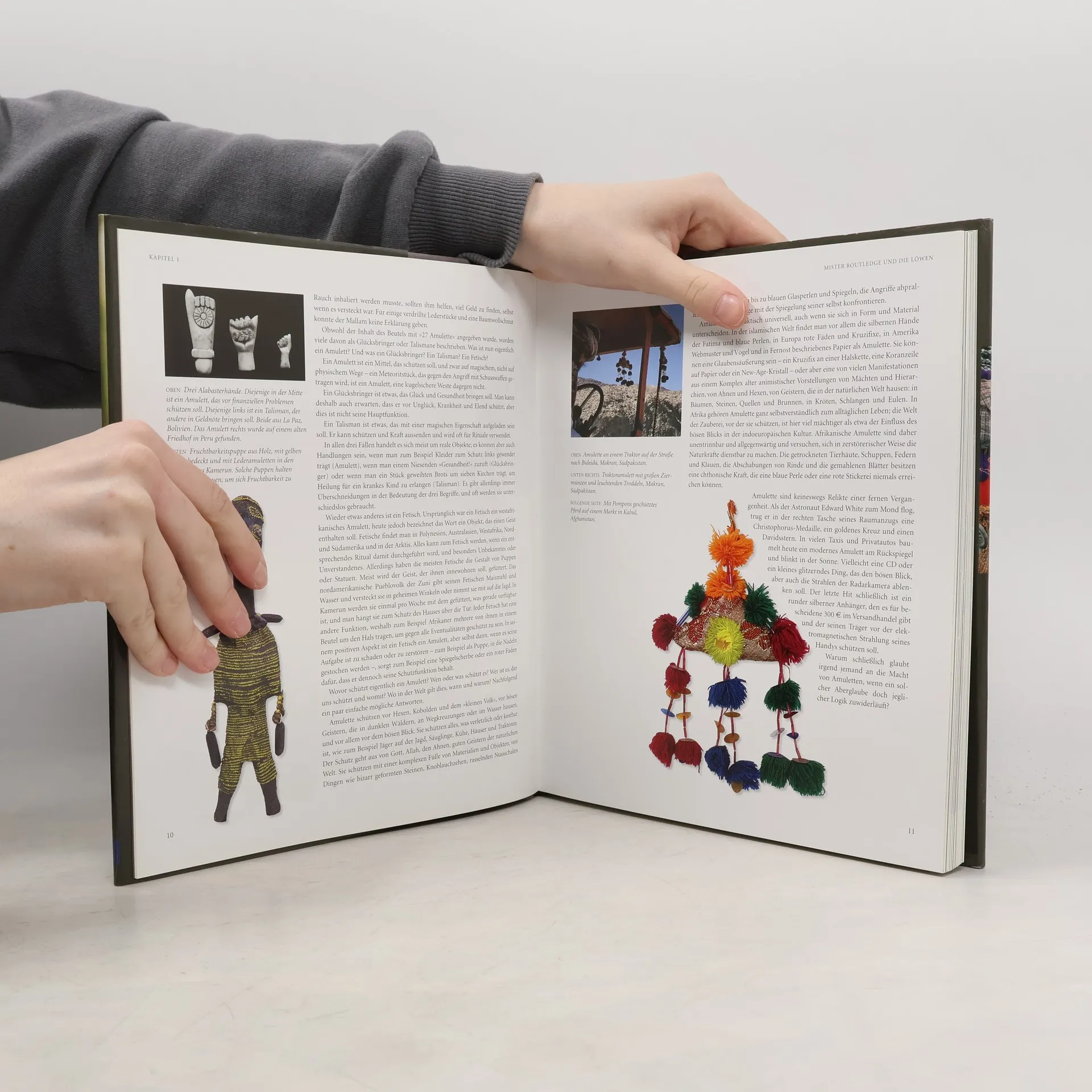 In der ganzen Welt suchen Menschen Schutz vor schädlichen Einflüssen durch Amulette, die vor Hexerei, dem bösen Blick, Krankheit und Unfällen bewahren sollen. Diese Amulette variieren in ihrer Schönheit und Schlichtheit und bestehen aus Materialien wie Steinen, Muscheln, Tierschwänzen und -zähnen sowie Perlen und Glöckchen. Sie werden um den Hals getragen, auf Kleidung genäht, an Gebäuden gemalt und in Fahrzeugen aufgehängt, um Babys, Bräute, Krieger, Jäger, Reisende und viele andere zu schützen. Während böse Geister an Straßenkreuzungen gefürchtet werden, hält der Glaube an die Schutzwirkung von Amuletten auch angesichts moderner Gefahren wie Autounfällen und neuen Krankheiten an. Mit über 400 Abbildungen und Beispielen aus Ländern wie Finnland, Kamerun, Mexiko und Usbekistan bietet das Buch einen umfassenden Überblick über Amulette: von den verwendeten Materialien und deren Symbolik bis hin zu den Menschen und Objekten, die sie schützen sollen. Die Themen reichen von Pest und Seuchen über Reisende und Krieger bis hin zu alltäglichen Schutzmaßnahmen, die die Verbindung zwischen Mensch und Magie verdeutlichen.