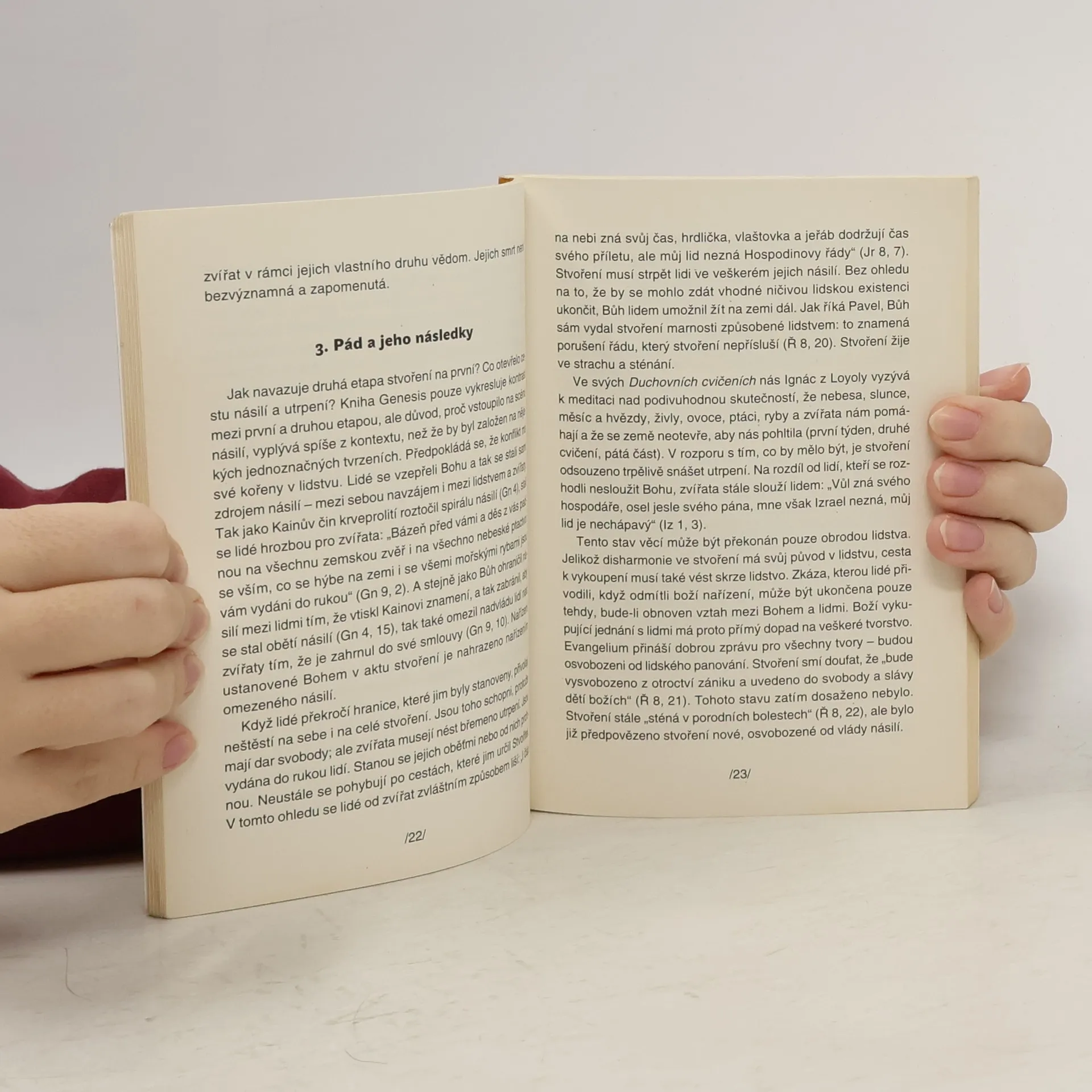 Svědectví Bible vidí lidi a zvířata v těsném společenství. Jsou si navzájem blízcí. A ačkoliv je zvláštní role lidí zdůrazňována, Písmo jako celek považuje za samozřejmé, že zvířata jsou součástí lidského prostředí. Jsou to boží tvorové a jako všechno, co Bůh stvořil, mají i ona Boha chválit. Pro degradaci zvířat na úroveň předmětů nenajdeme v Bibli žádné odůvodnění. Ačkoli její kulturní kořeny tkví již ve starověku, jde svou podstatou o produkt moderního myšlení, jež lidstvo klade do centra vesmíru a okolní svět vidí jako podřízený lidskému duchu.