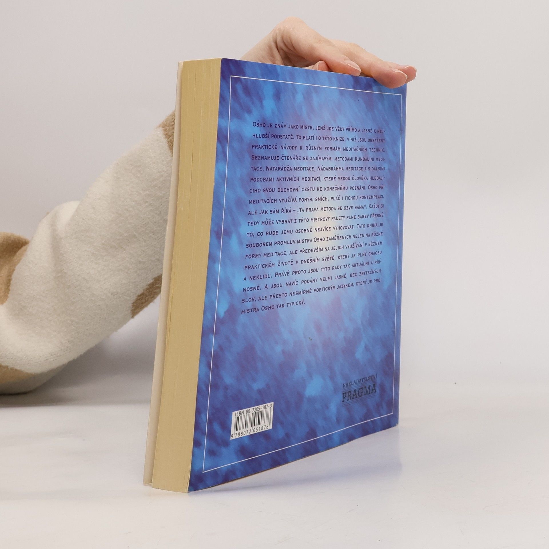 Osho je znám jako mistr, jenž jde vždy přímo a jasně k nejhlubší podstatě. To platí i o této knize, v níž jsou obsaženy praktické návody k různým formám meditačních technik. Seznamuje čtenáře se zajímavými metodami Kundaliní meditace, Natarádža meditace, Nádabráhma meditace a s dalšími podobami aktivní meditace.