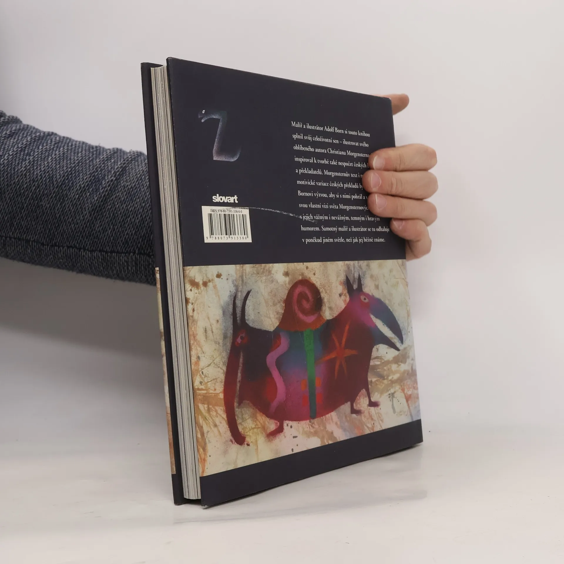 Malíř a ilustrátor Adolf Born si touto knihou splnil svůj celoživotní sen - ilustrovat svého oblíbeného autora Christiana Morgensterna, jenž inspiroval k tvorbě také nesčetné množství českých básníků a překladatelů. Rozličné motivické variace českých překladů byly Adolfovi Bornovi výzvou, aby si s nimi pohrál a vytvořil vlastní vizi světa Morgensternových básní, s jejich vážným i nevážným, temným i hravým humorem. Adolf Born se tu odkrývá v poněkud jiném světle, než jak jej zná běžný čtenář.