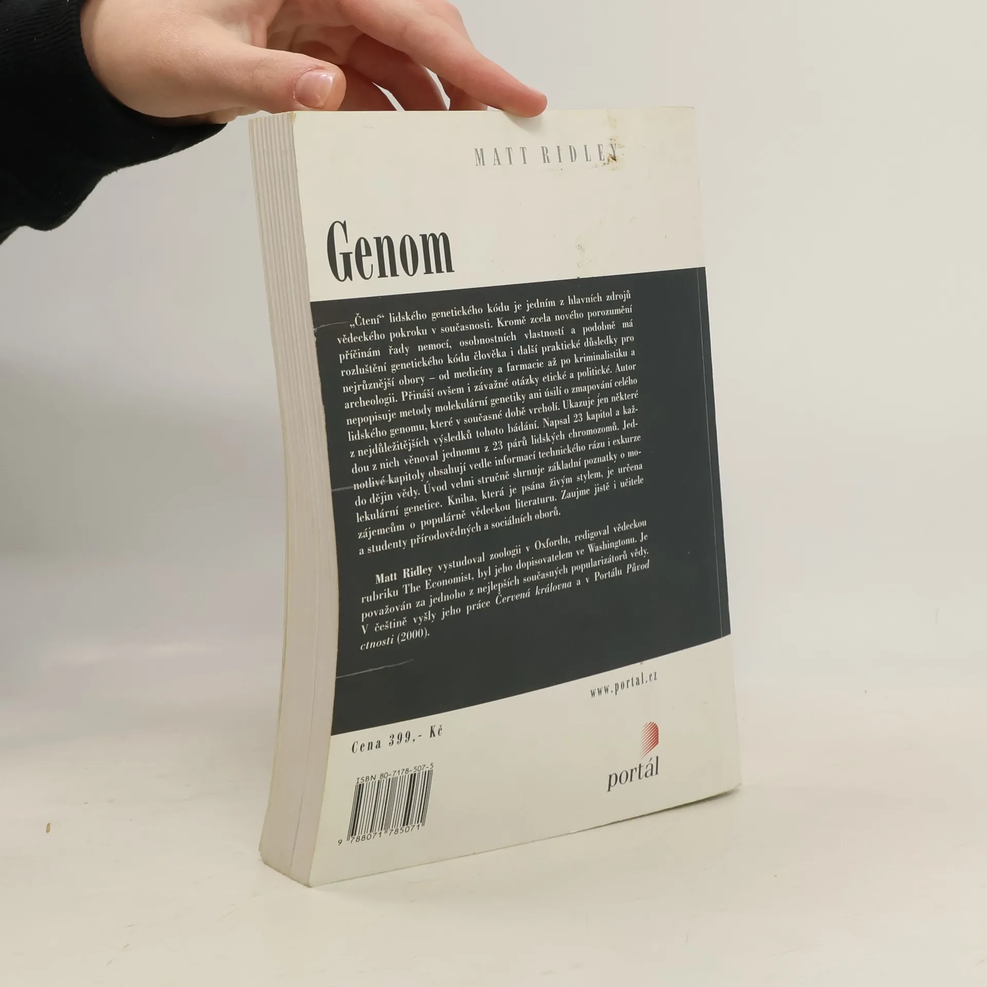 Podtitul: "Životopis lidského druhu v třiadvaceti kapitolách" Ridley je osvěčený autor a ani v prozatím poslední knize přeložené do češtiny Vás nezklame. Dozvíte se základní poznatky o molekulární genetice a to způsobem srozumitelným, jasným, byť je zřejmé, že se musí jednat jen o představení těch nejdůležitějších výsledků této disciplíny. O otázce, zda se filozofové mají věnovat poznatkům tohoto druhu, přestanete pochybovat hned po úvodní kapitole. V posledním čísle německého časopisu Information Philosophie (4/2001) byla úvodní studie shodou okolností věnována právě otázce: Co víme, když známe lidský genom? Filozofové mají opět o práci postaráno.