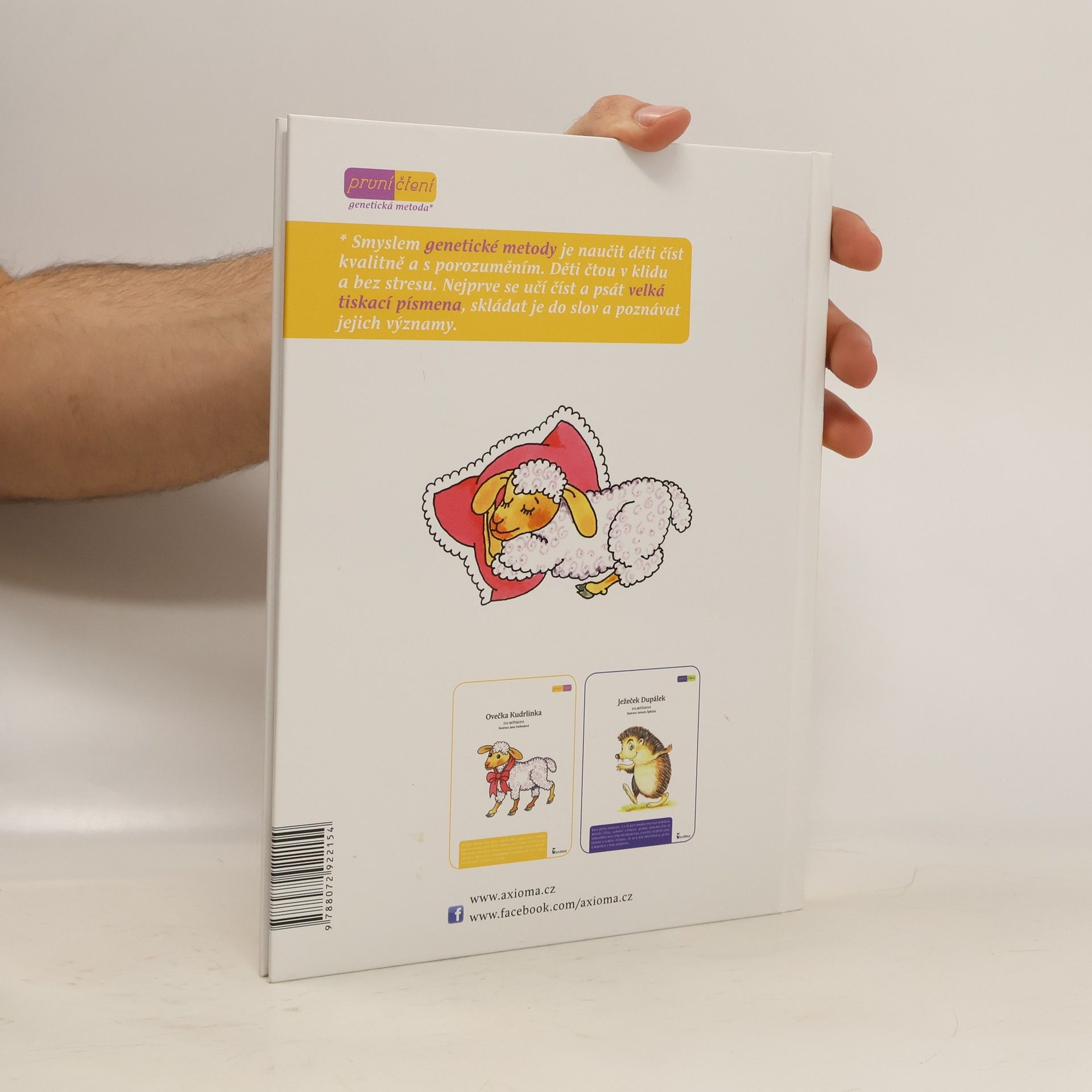 Veselá dobrodružství bábrlinky a její ovečky Kudrlinky potěší všechny, kteří rádi poslouchají pohádky. Text knihy je vysázen velkými tiskacími písmeny, což je jeden z principů tzv. genetické metody, kdy se děti nejdříve učí číst a psát velká písmena, skládat je do slov a poznávat jejich významy.