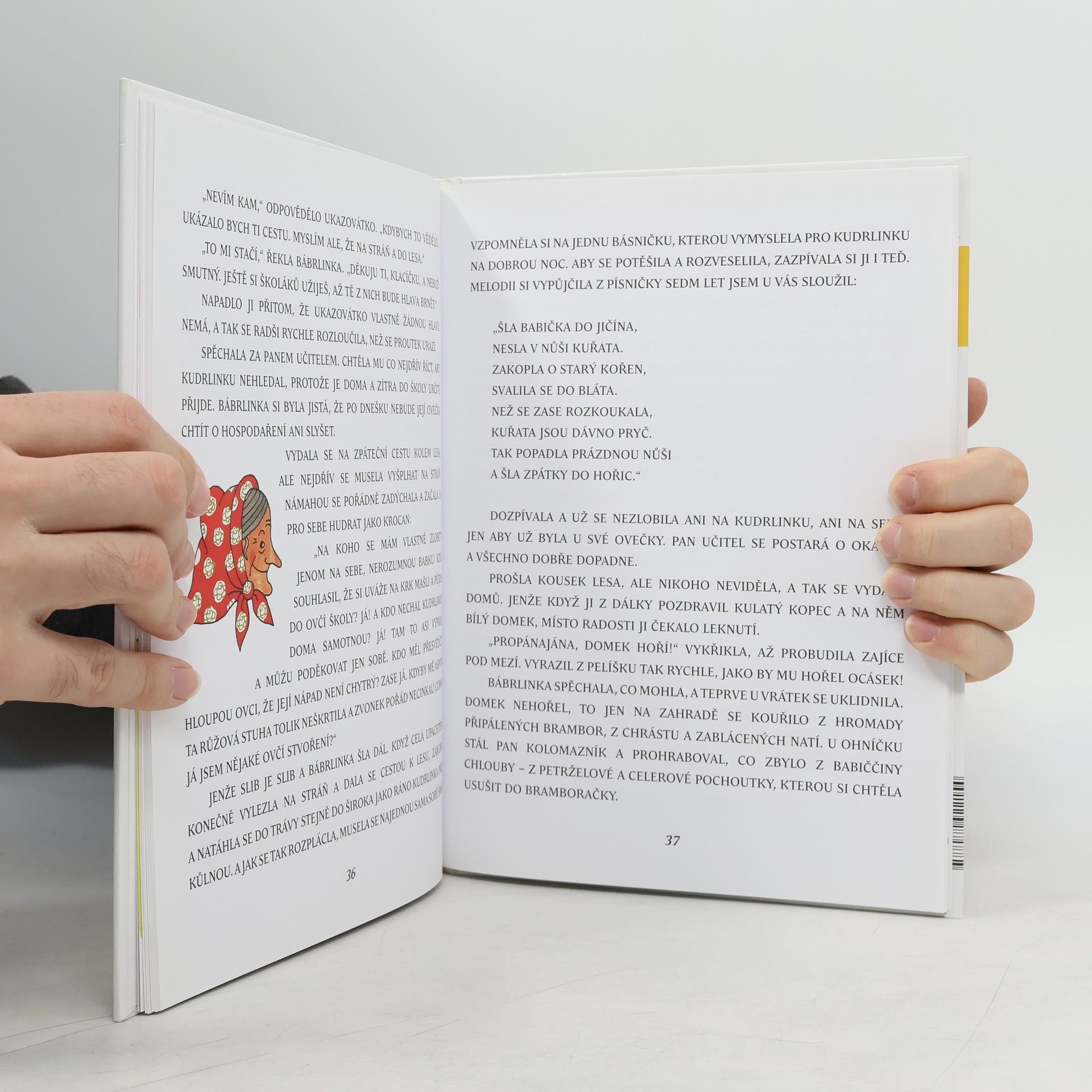 Veselá dobrodružství bábrlinky a její ovečky Kudrlinky potěší všechny, kteří rádi poslouchají pohádky. Text knihy je vysázen velkými tiskacími písmeny, což je jeden z principů tzv. genetické metody, kdy se děti nejdříve učí číst a psát velká písmena, skládat je do slov a poznávat jejich významy.