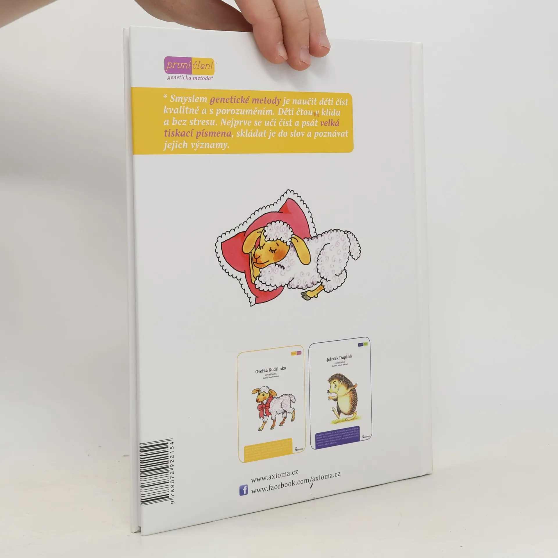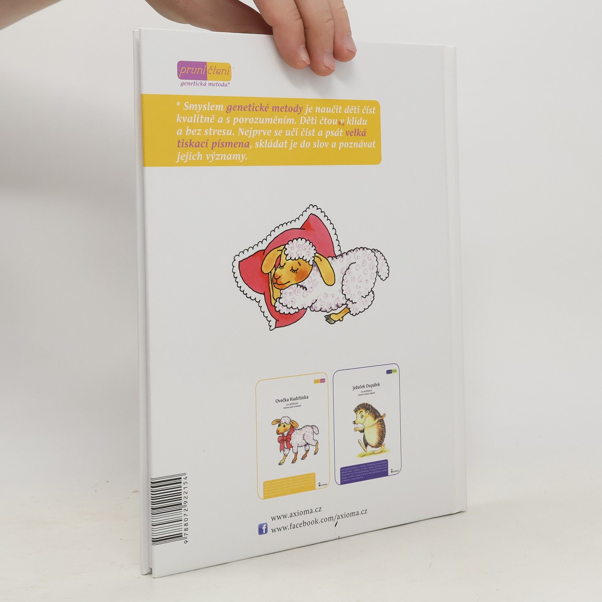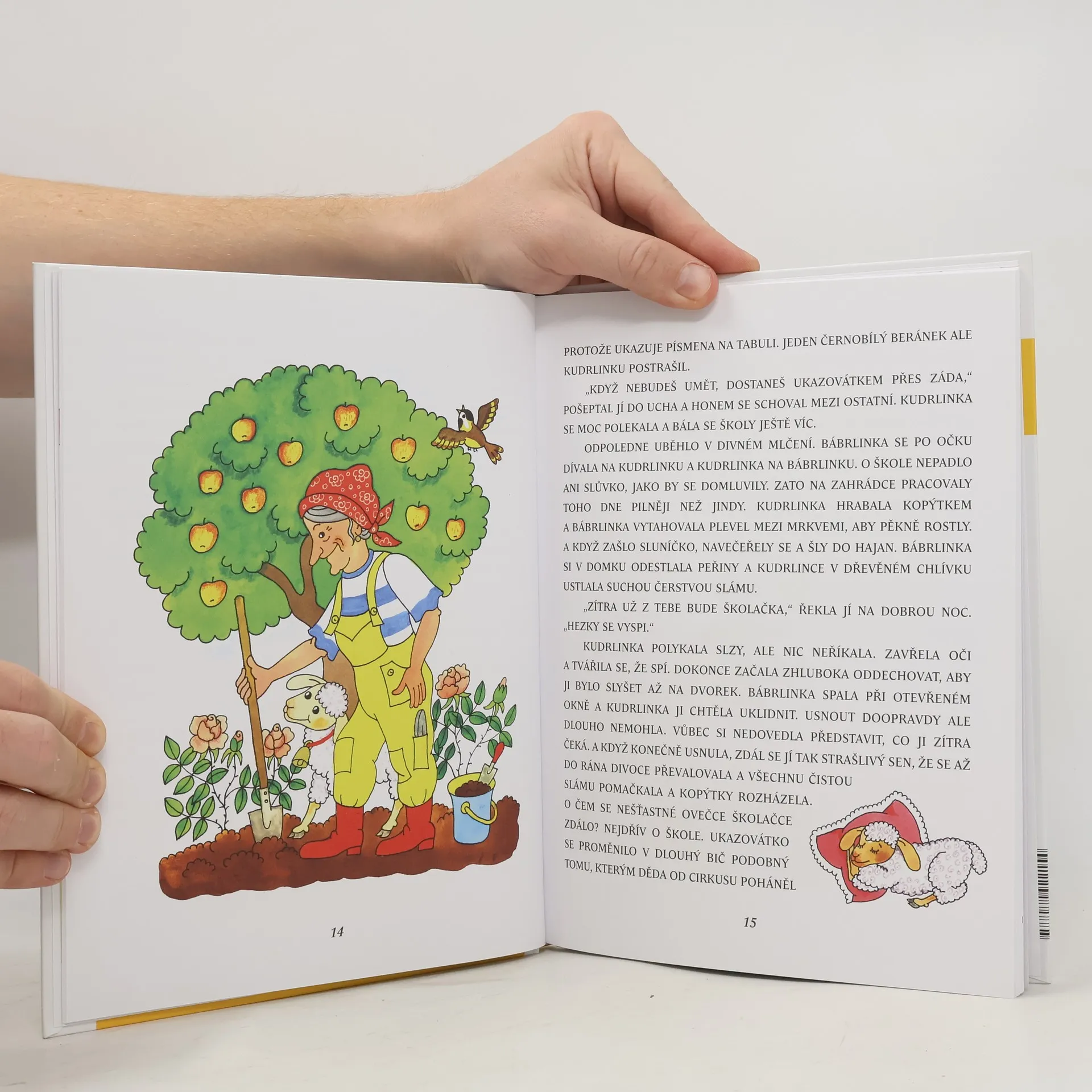 Veselá dobrodružství bábrlinky a její ovečky Kudrlinky potěší všechny, kteří rádi poslouchají pohádky. Text knihy je vysázen velkými tiskacími písmeny, což je jeden z principů tzv. genetické metody, kdy se děti nejdříve učí číst a psát velká písmena, skládat je do slov a poznávat jejich významy.