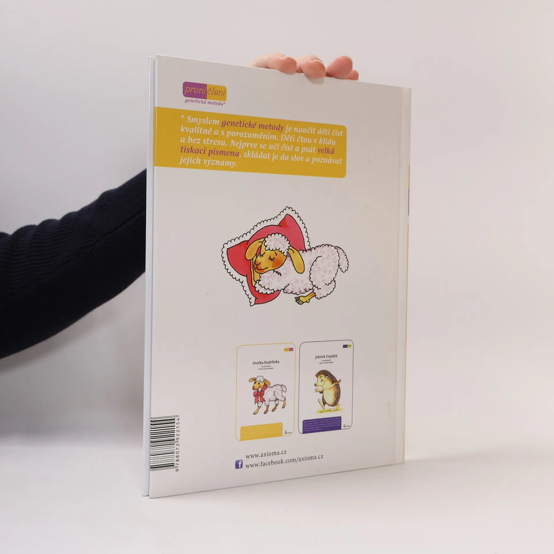Veselá dobrodružství bábrlinky a její ovečky Kudrlinky potěší všechny, kteří rádi poslouchají pohádky. Text knihy je vysázen velkými tiskacími písmeny, což je jeden z principů tzv. genetické metody, kdy se děti nejdříve učí číst a psát velká písmena, skládat je do slov a poznávat jejich významy.