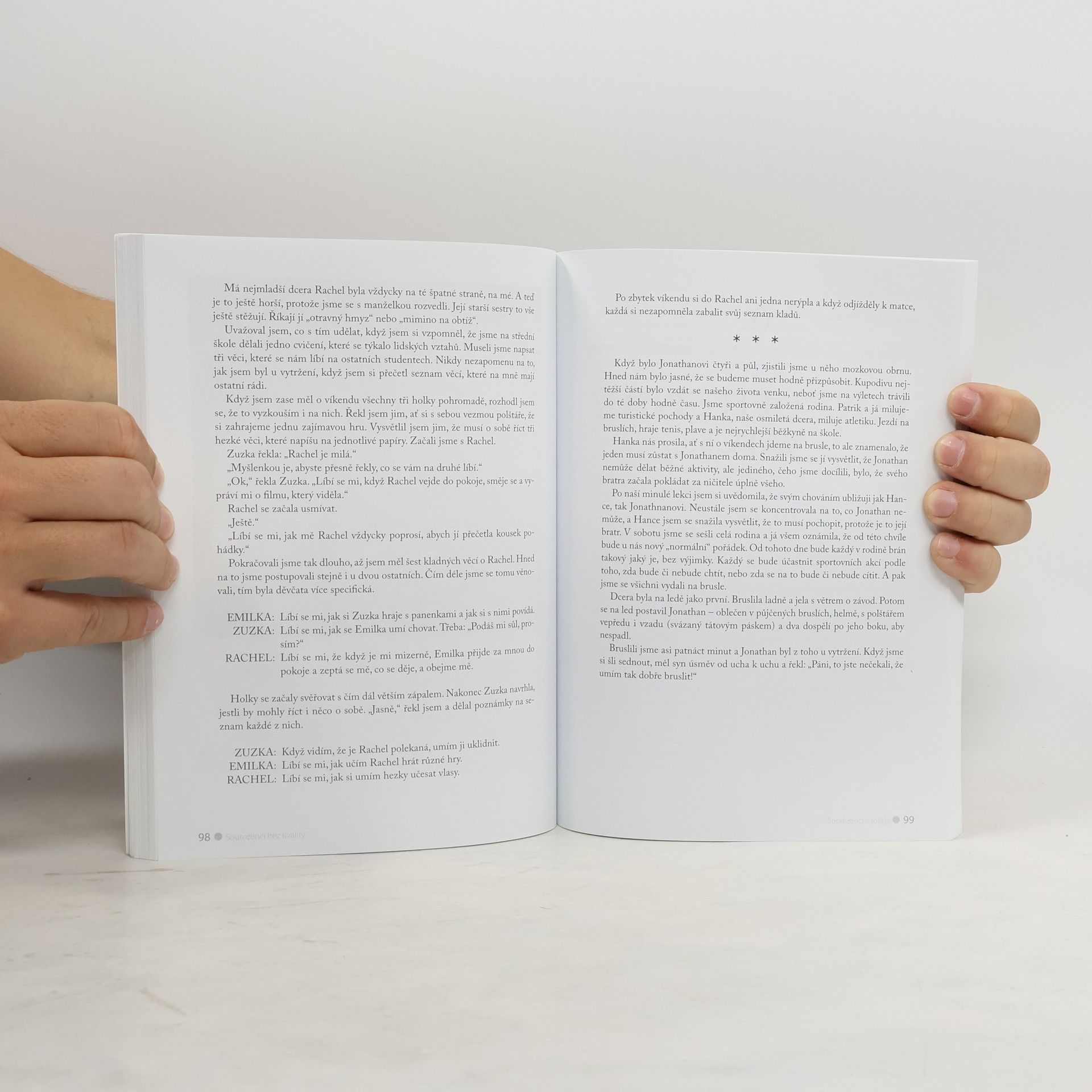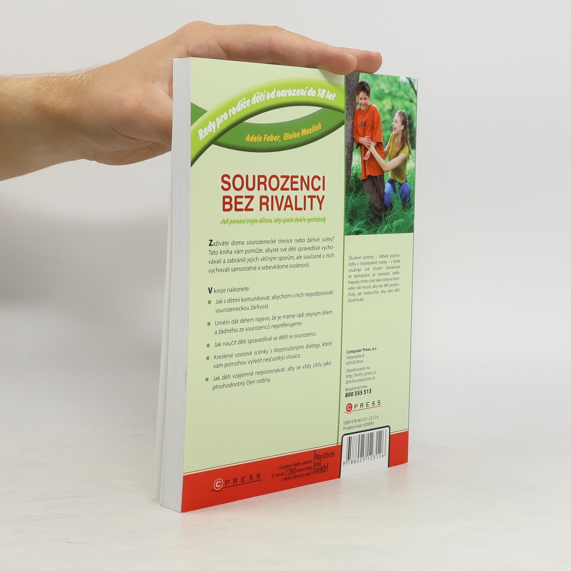 Zažíváte doma sourozenecké třenice nebo žárlivé scény? Tato kniha vám pomůže, abyste své děti spravedlivě vychovávali a zabránili jejich věčným sporům, ale současně z nich vychovali samostatné a sebevědomé osobnosti. V knize naleznete: Jak s dětmi komunikovat, abychom v nich nepodporovali sourozeneckou žárlivost. Umění dát dětem najevo, že je máme rádi stejným dílem a žádného ze sourozenců nepreferujeme. Jak naučit děti spravedlivě se dělit se sourozenci. Kreslené vzorové scénky s doporučenými dialogy, které vám pomohou vyřešit nejčastější situace. Jak děti vzájemně neporovnávat, aby se vždy cítily jako plnohodnotný člen rodiny. Zkušené autorky – dětské psycholožky a trojnásobné matky – v knize využívají své životní zkušenosti ze spolupráce se stovkami rodin. Napsaly mimo jiné také světový bestseller Jak mluvit, aby nás děti poslouchaly, jak naslouchat, aby nám děti důvěřovaly a Jak mluvit, aby nás teenageři poslouchali, jak naslouchat, aby nám teenageři důvěřovali.