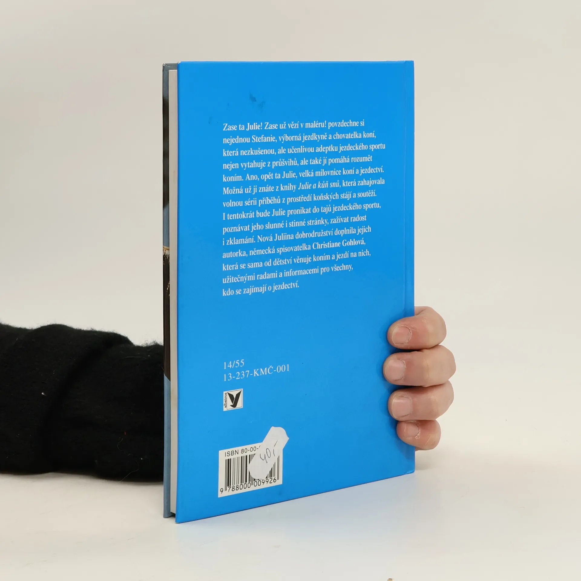 Zase ta jJulie! Zase už vězí v maléru! povzdechne si najednou Stefanie, výborná jezdkyně a chovatelka koní, která nezkušenou, ale učenlivou adeptku jezdeckého sportu nejen vytahuje z průšvihu, ale také jí pomáhá rozumět koním. Ano, opět ta Julie, velká milovnice koní a jezdectví. Možná už ji znáte z knihy Julie a kůň snů, která zahajovala volnou serii příběhů z prostředí koňských stájí a soutěží. I tentokrát bude Julie pronikat do tajů jezdeckého sportu, poznávat jeho slunné i stinné stránky, zažívat radost i zklamání. Nová Juliina dobrodružství doplnila jejich autorka, německá spisovatelka Christine Gohlová, která se sama od dětství věnuje koním a jezdí na nich, užitečnými radami a informacemi pro všechny, kdo se zajímají o jezdectví.... celý text