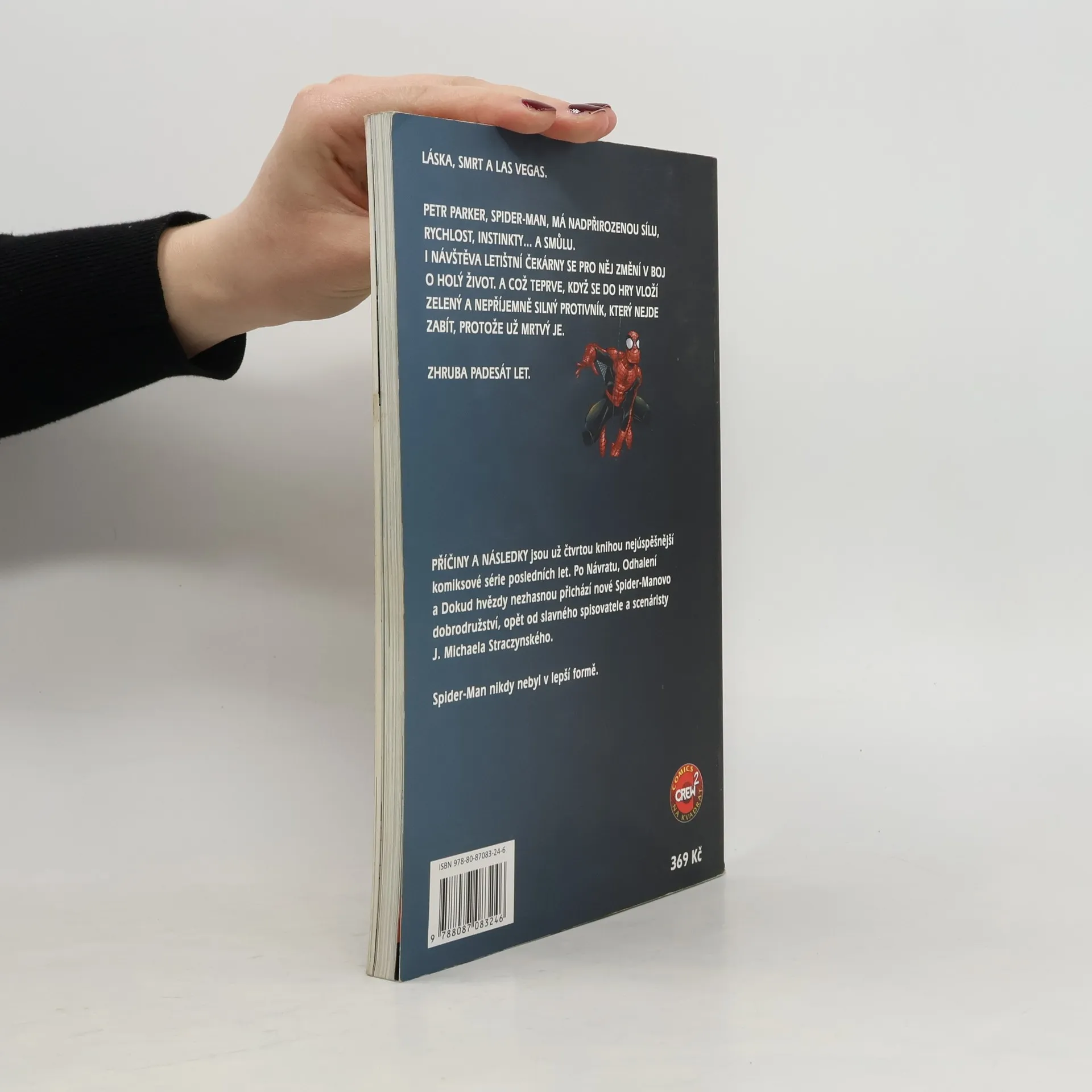 Láska, smrt a Las Vegas. Petr Parker, Spider-Man, má nadpřirozenou sílu, rychlost, instinkty... a smůlu. I návštěva letištní čekárny se pro něj změní v boj o holý život. A což teprve, když se do hry vloží zelený a nepříjemně silný protivník, který nejde zabít, protože už mrtvý je. Zhruba padesát let. Příčiny a následky jsou už čtvrtou knihou nejúspěšnější komiksové série posledních let. Po Návratu, Odhalení a Dokud hvězdy nezhasnou přichází nové Spider-Manovo dobrodružství, opět od slavného spisovatele a scénáristy J. Michaela Straczynského. Spider-Man nikdy nebyl v lepší formě.